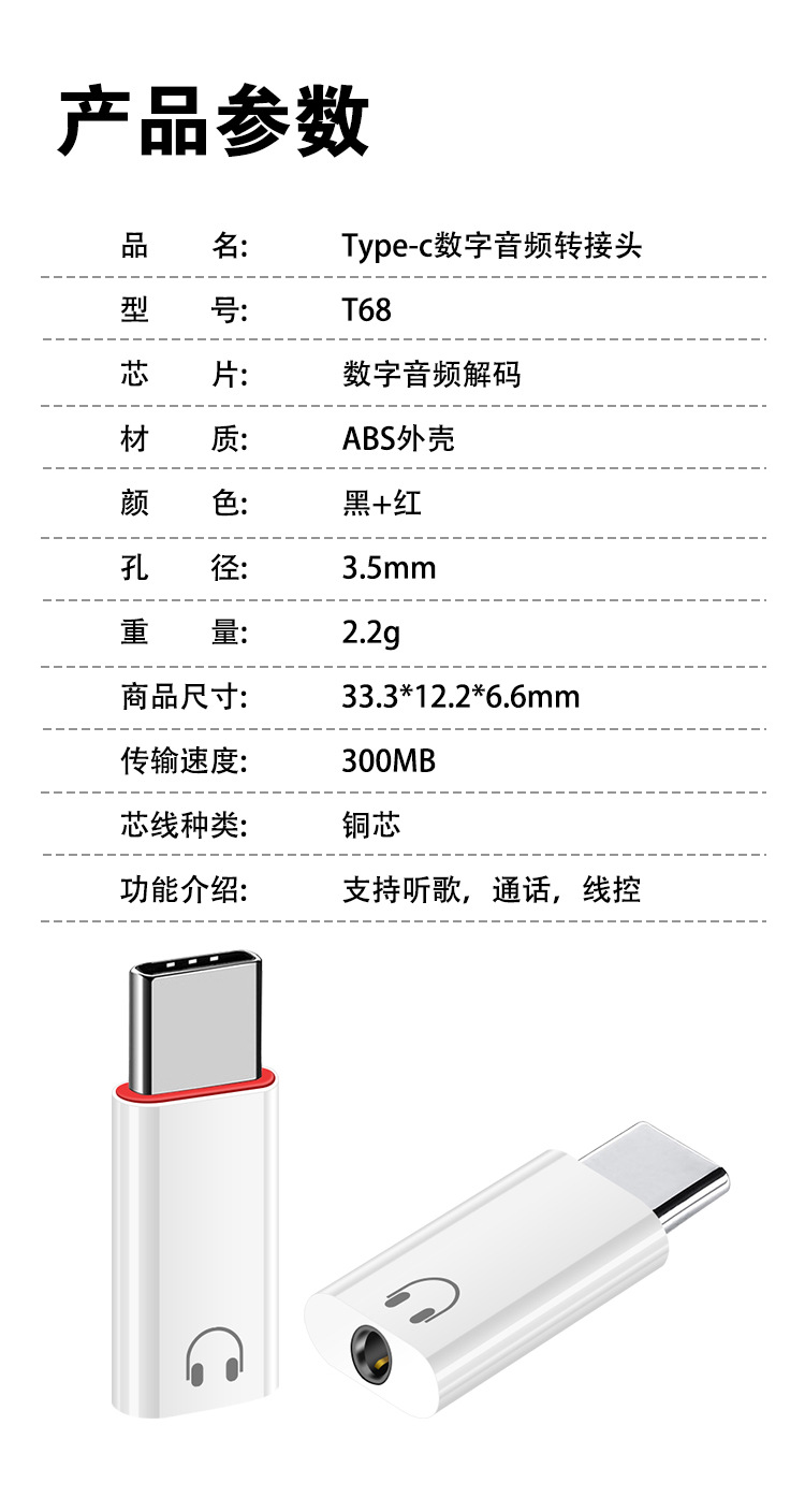 TYPE-C 인터페이스 휴대 전화 3.5mm 여성 오디오 변환기 디지털 오디오 DAC 디코딩 노트북 어댑터