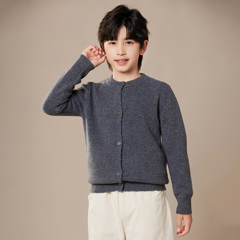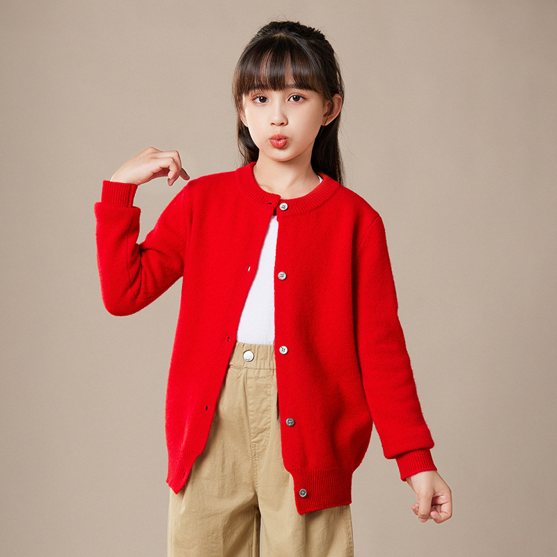 2024 가을과 겨울 새로운 어린이 스웨터 카디건 남성과 여성의 단색 기본 둥근 목 크기 어린이 학교 옷스토어 가기