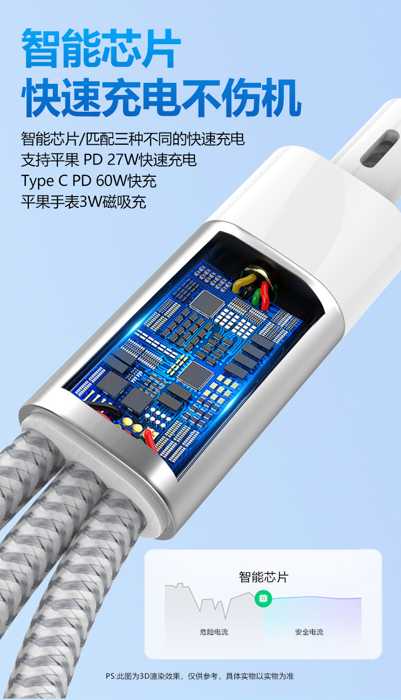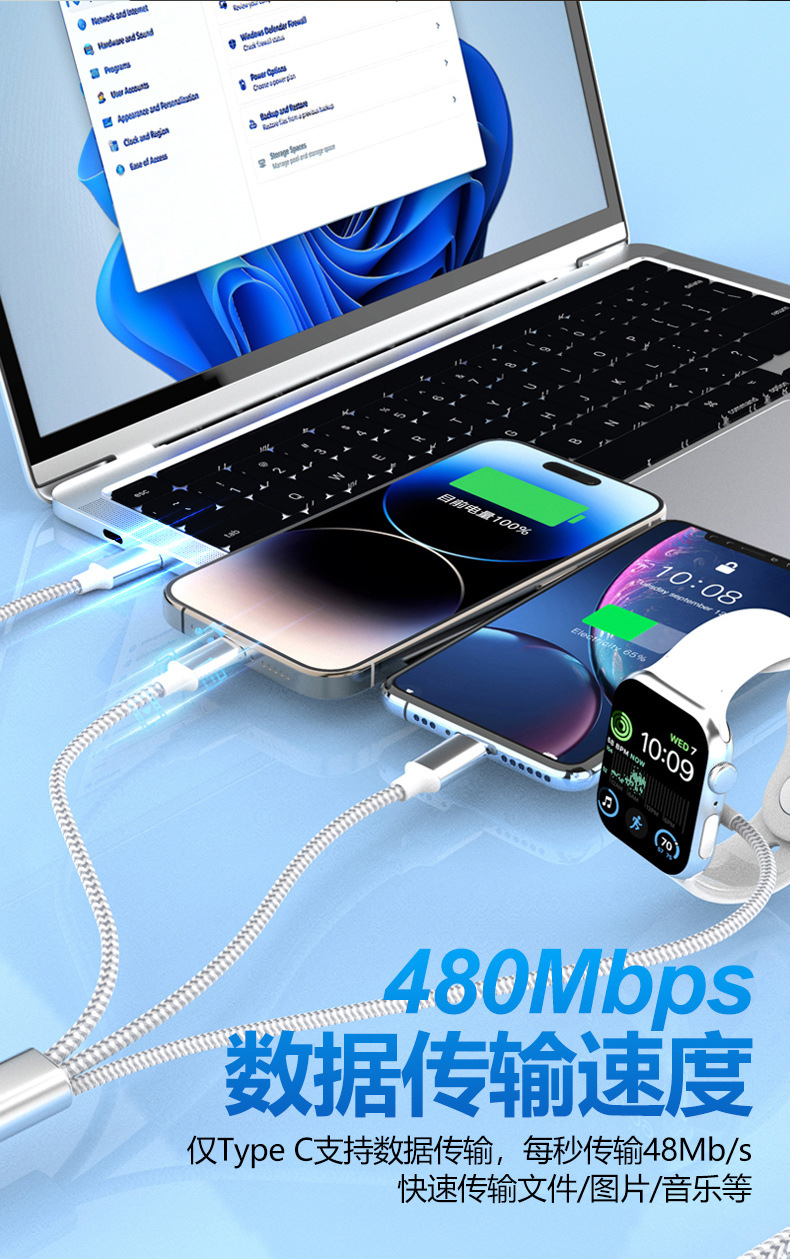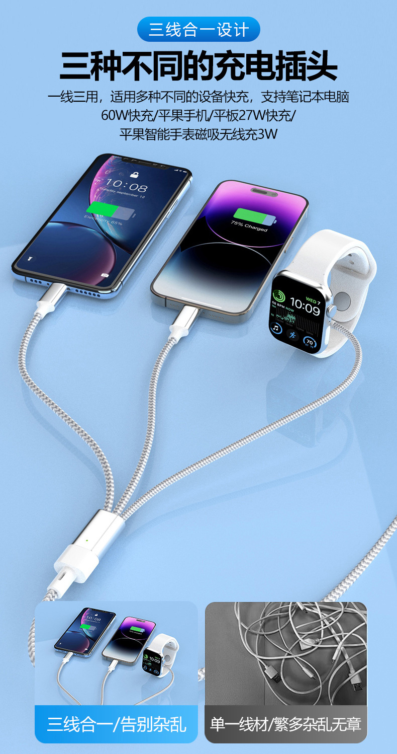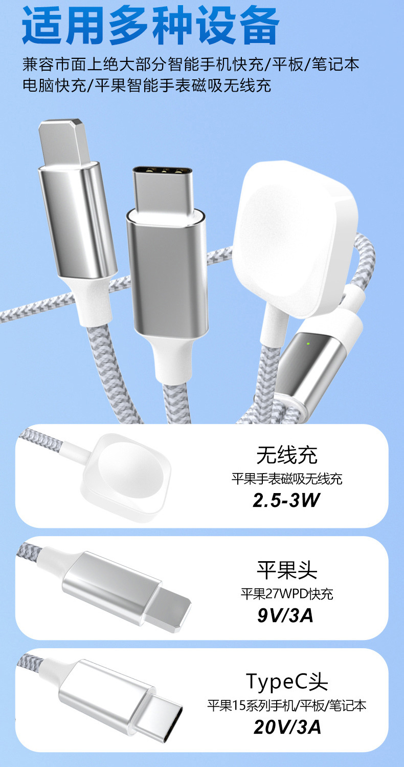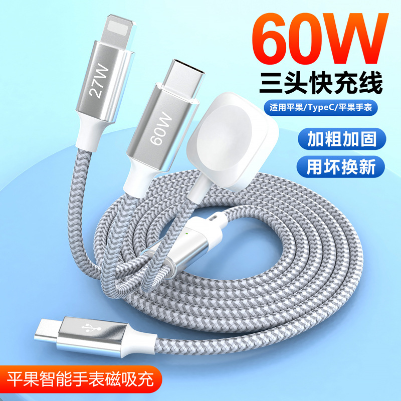 타입 c-번개 마그네틱 시계 무선 충전기 애플 15 3 대 1 데이터 케이블
