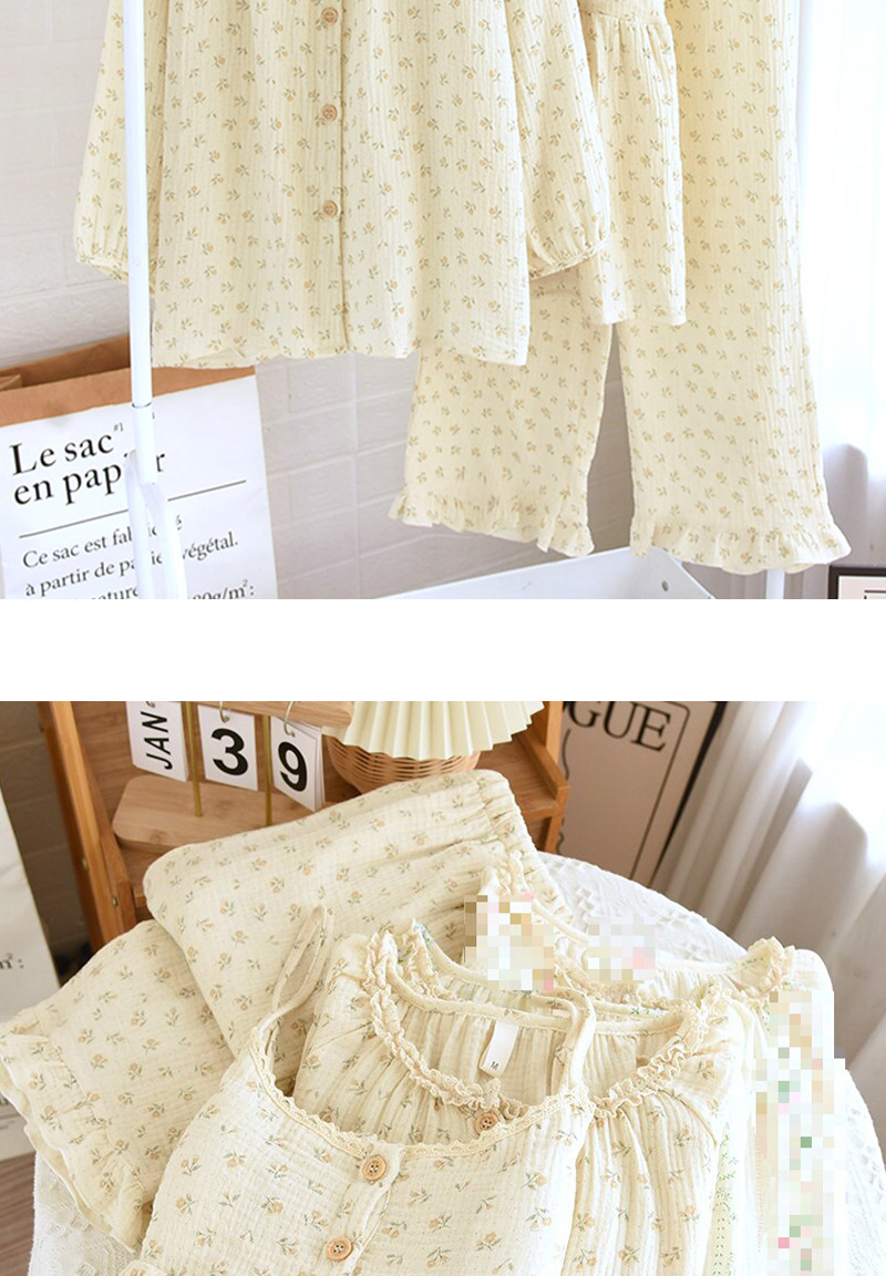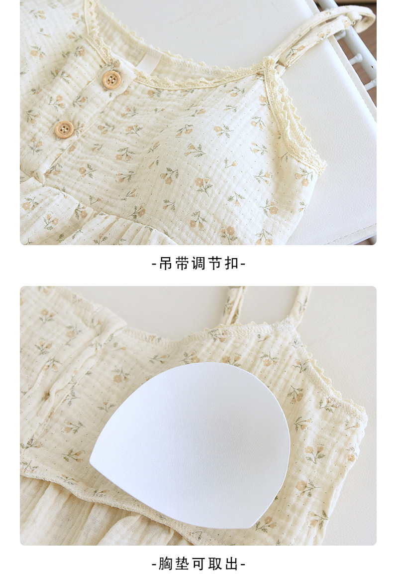 새로운 봄과 가을 코튼 거즈 달콤한 파자마, 가슴 패드 소녀 슬링 3 피스 세트 세트 외부 의류스토어 가기