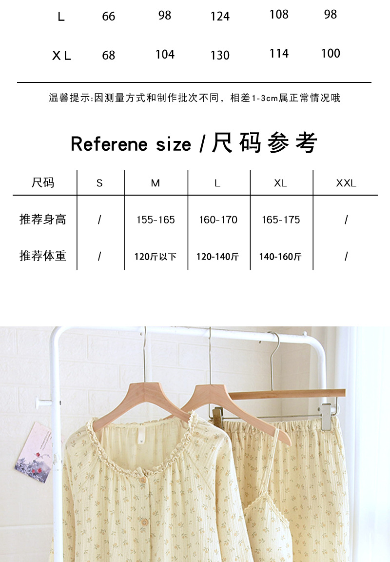 새로운 봄과 가을 코튼 거즈 달콤한 파자마, 가슴 패드 소녀 슬링 3 피스 세트 세트 외부 의류