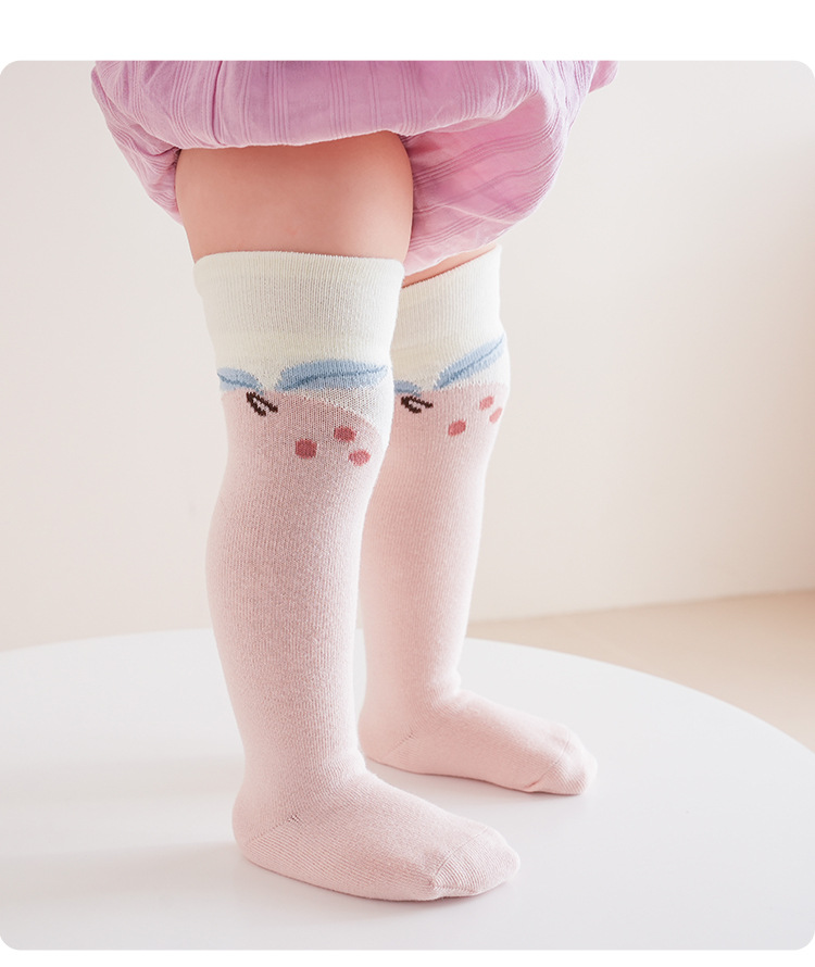 아기 양말 봄과 가을 아기면 양말 높은 튜브 무릎 양말 신생아 허벅지 양말 어린이 만화 뼈없는 양말스토어 가기