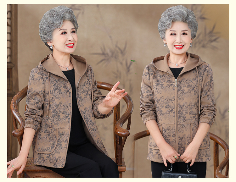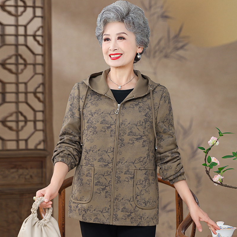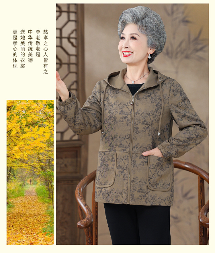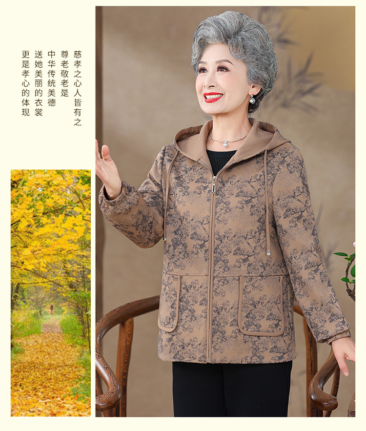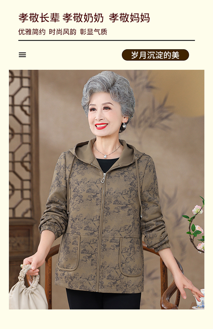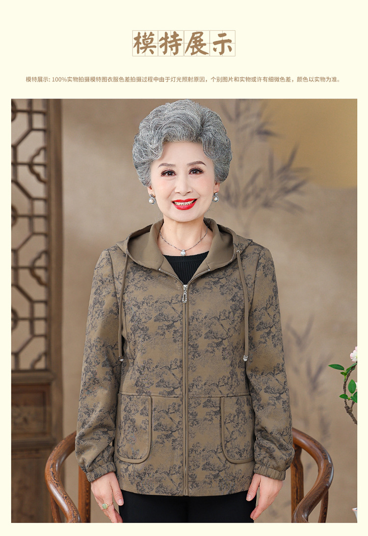엄마 가을 2024 새로운 후드 재킷 최고 중년 여성의 할머니 쿠오 아내 플러스 사이즈 코트 코트스토어 가기