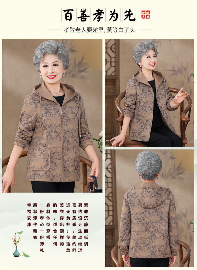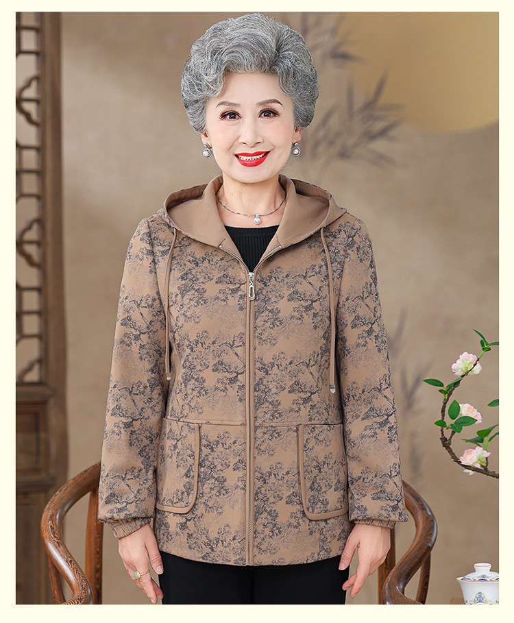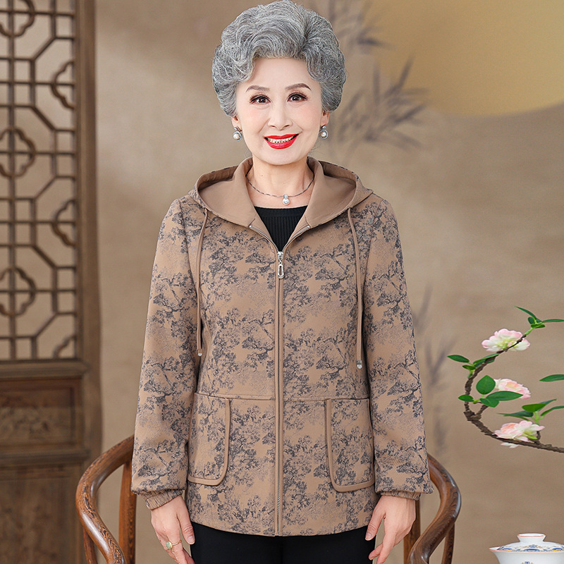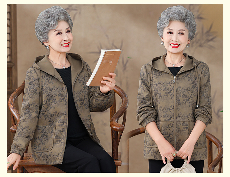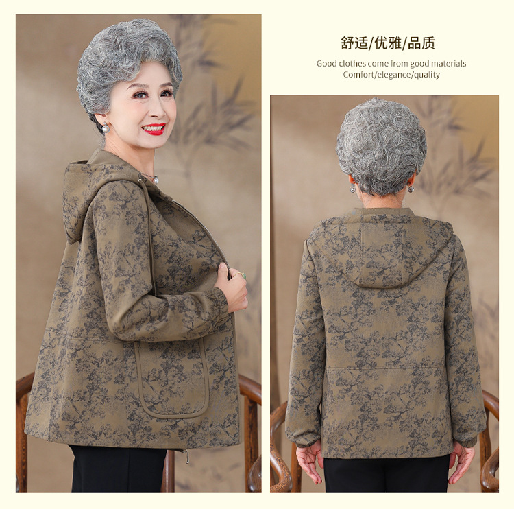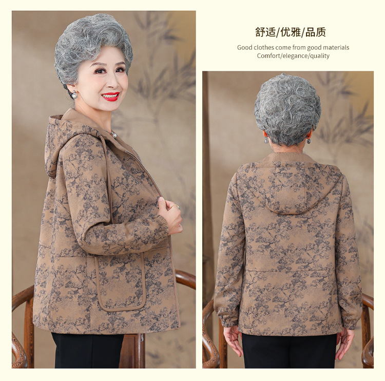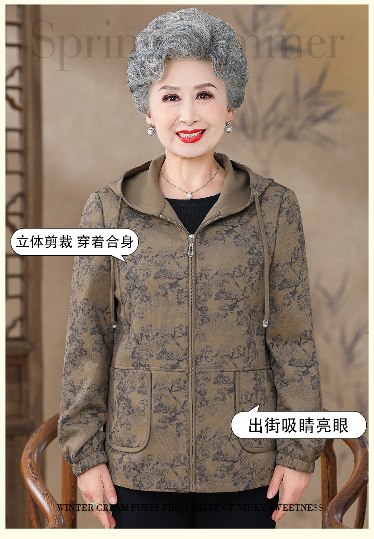 엄마 가을 2024 새로운 후드 재킷 최고 중년 여성의 할머니 쿠오 아내 플러스 사이즈 코트 코트스토어 가기