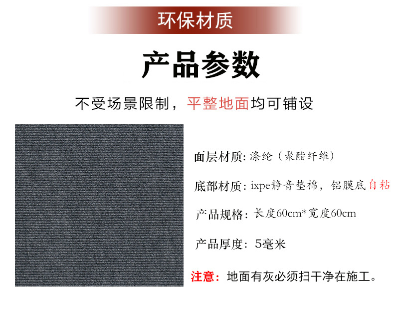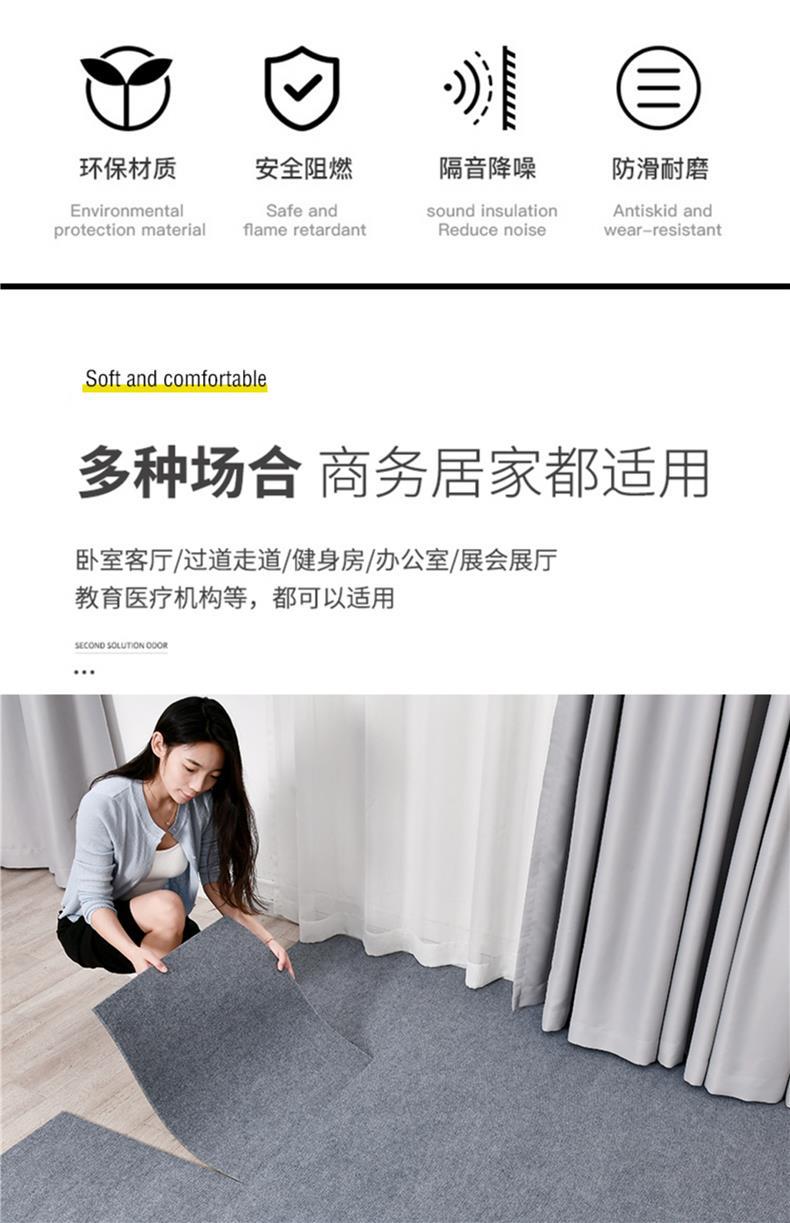 자착식 무접착 카펫 타일 미끄럼 방지 오염 방지 거실 침실 사무실 상업용 시멘트 바닥용 매트 내마모성