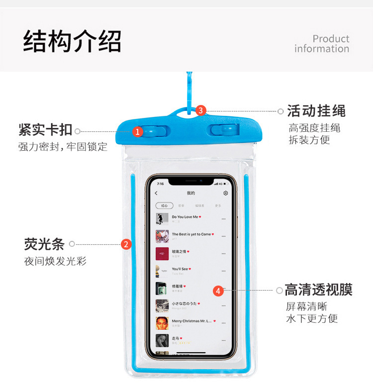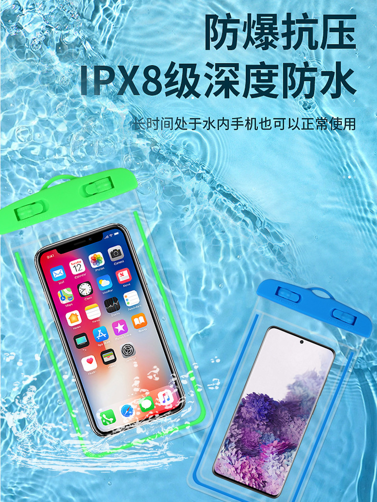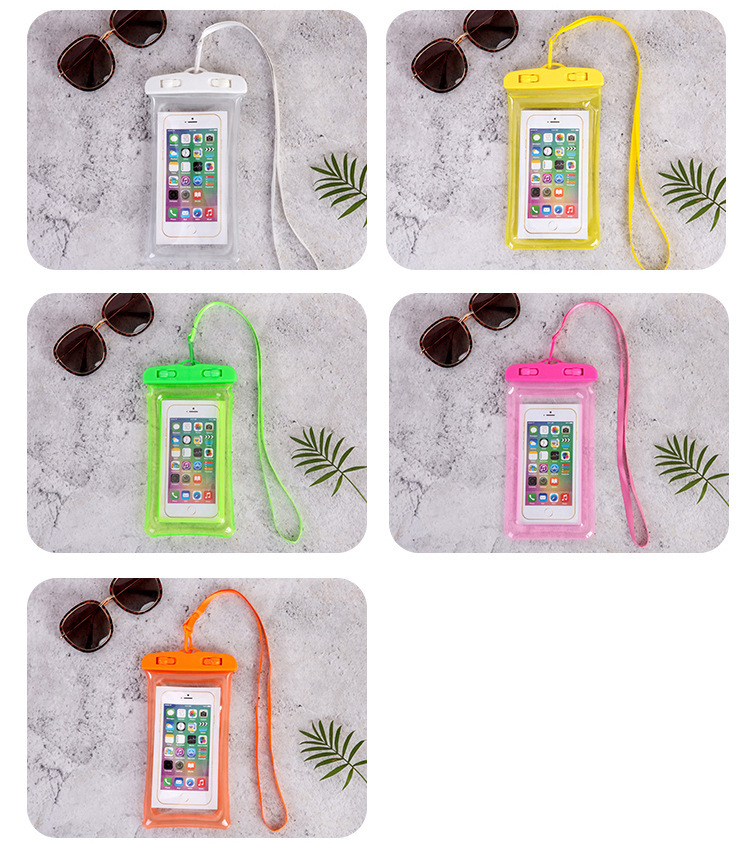 휴대 전화 방수 가방 여름 야외 수영 교수형 목 빛나는 투명 보호 커버 높은 투명 터치 스크린 방수 휴대 전화 케이스
