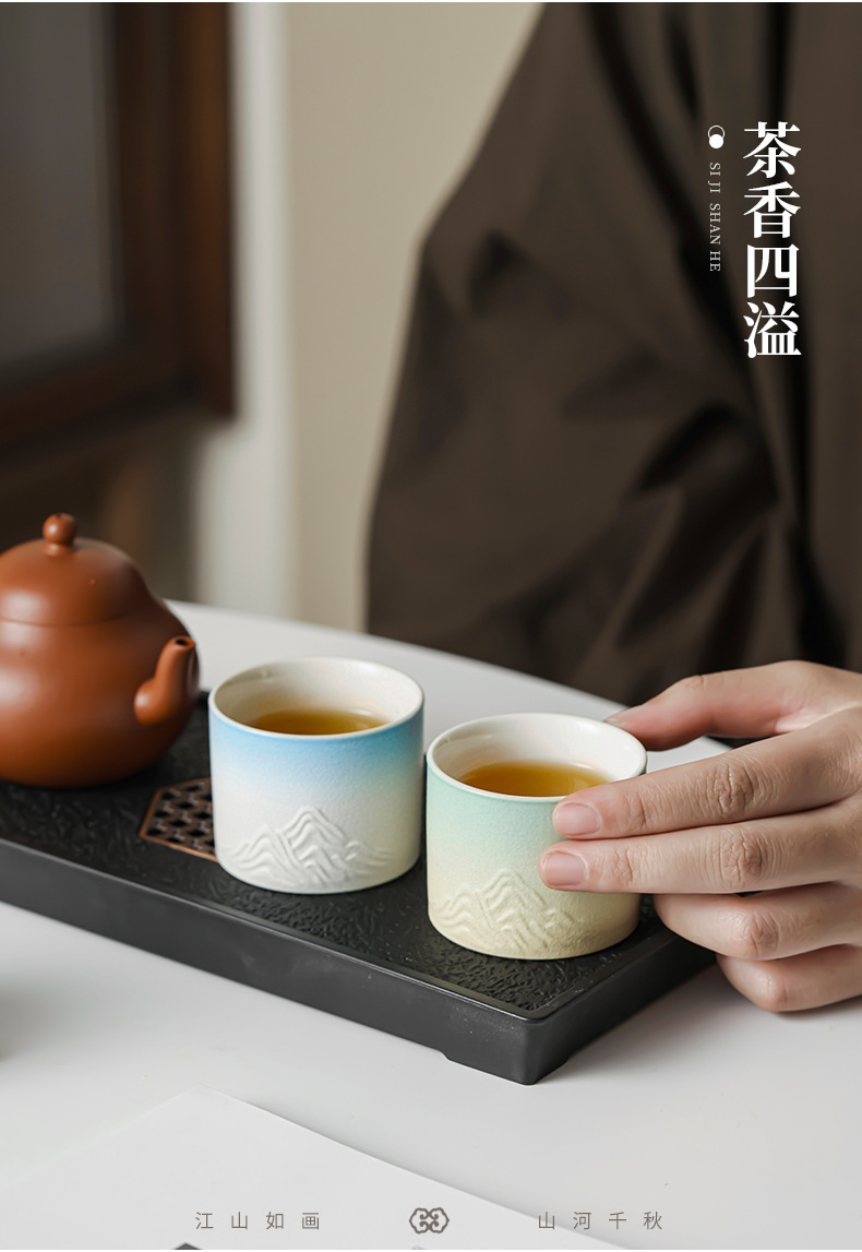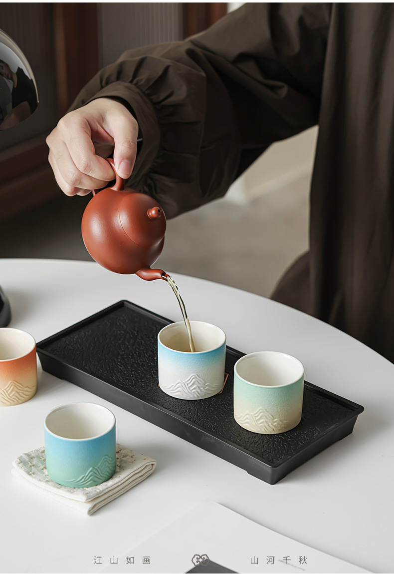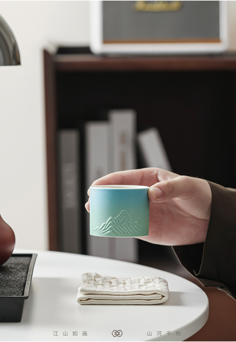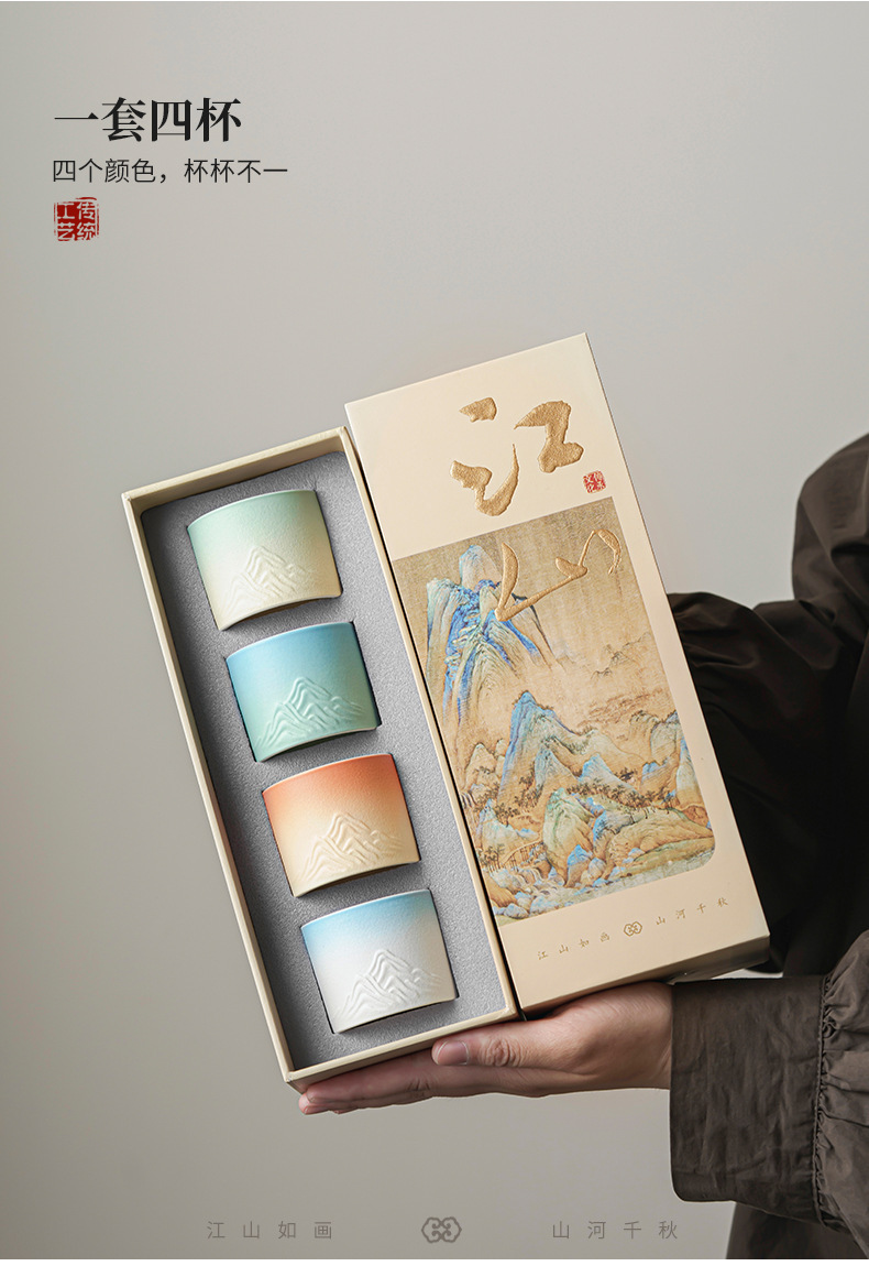 Qianli Jiangshan 사계절 티 컵 선물 상자 차 세트 싱글 컵 차 시음 컵 홈 오피스 휴일 창조적 인 동반 행사