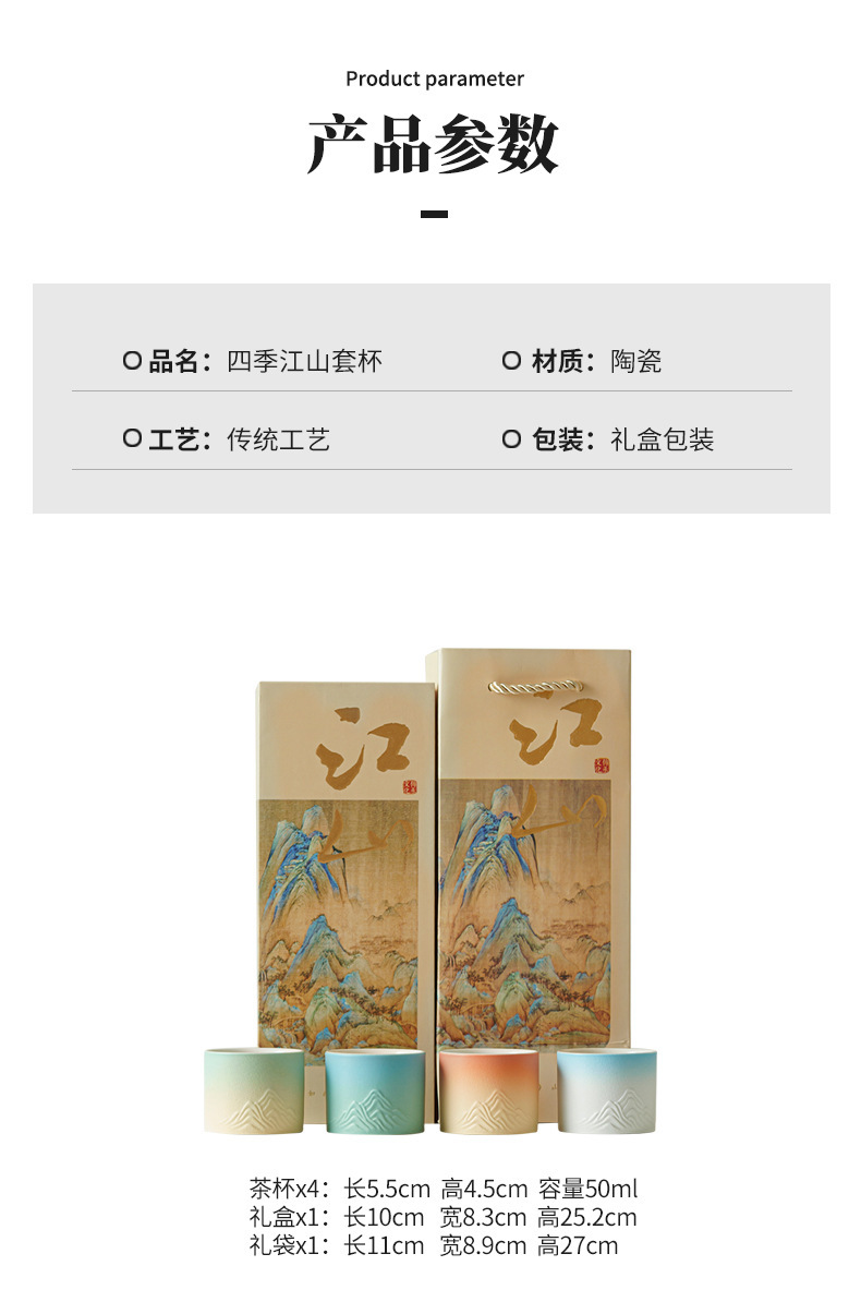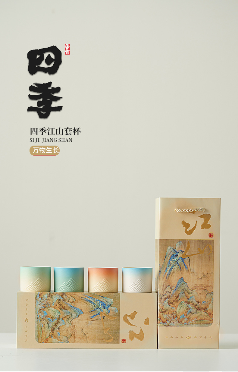 Qianli Jiangshan 사계절 티 컵 선물 상자 차 세트 싱글 컵 차 시음 컵 홈 오피스 휴일 창조적 인 동반 행사스토어 가기