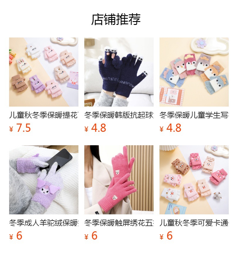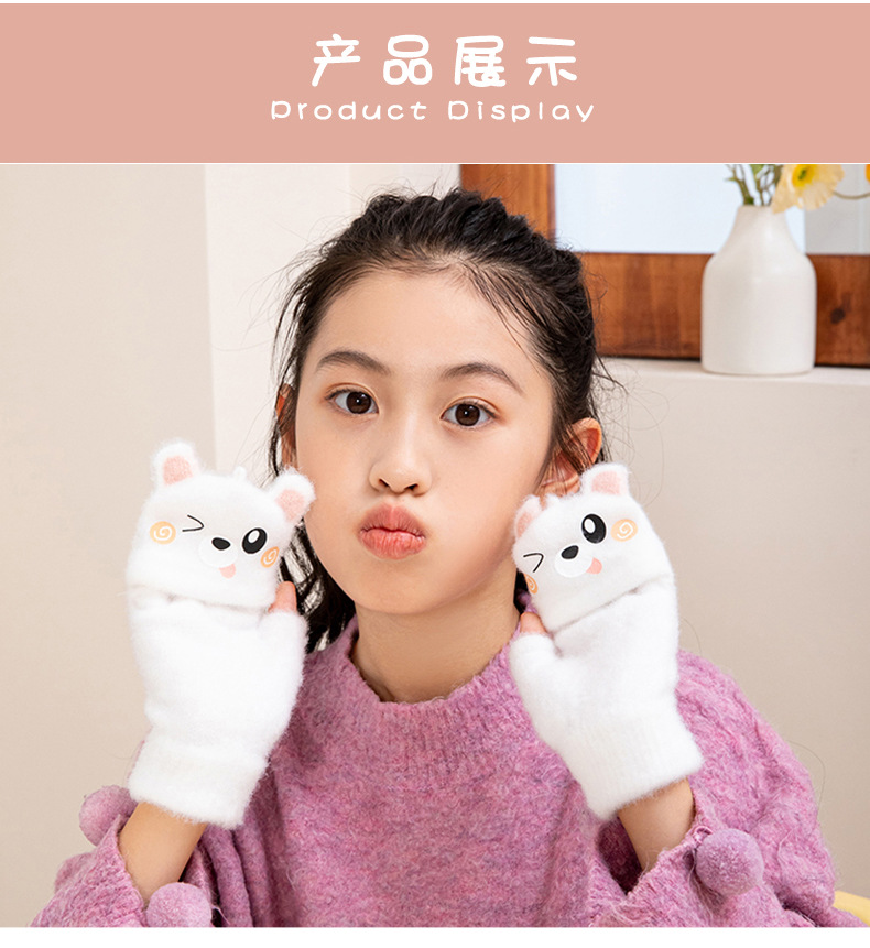 새로운 겨울 따뜻한 어린이 겨울 감기 방지 귀여운 아기 다섯 손가락 통기성 만화 반 손가락 플립 장갑 남녀스토어 가기