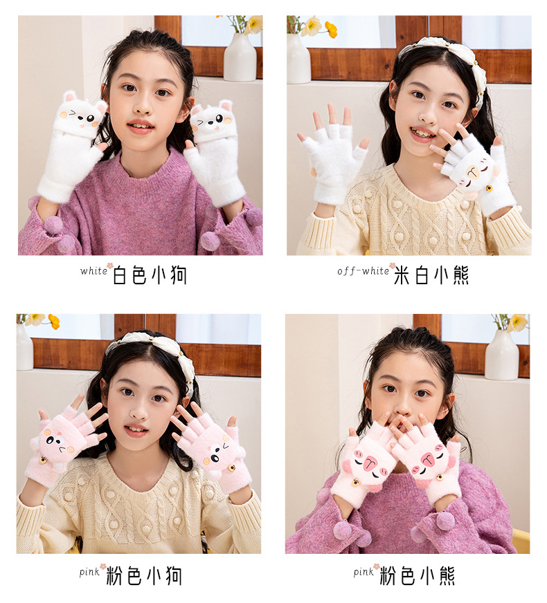 새로운 겨울 따뜻한 어린이 겨울 감기 방지 귀여운 아기 다섯 손가락 통기성 만화 반 손가락 플립 장갑 남녀