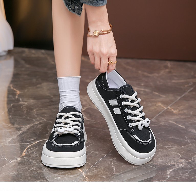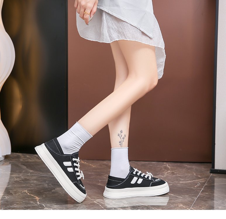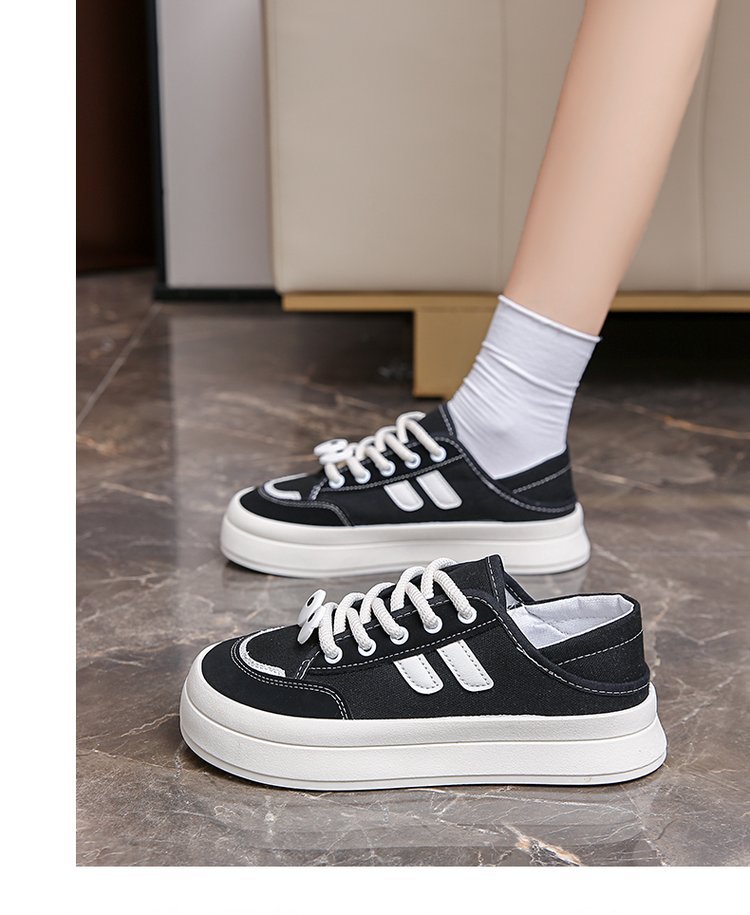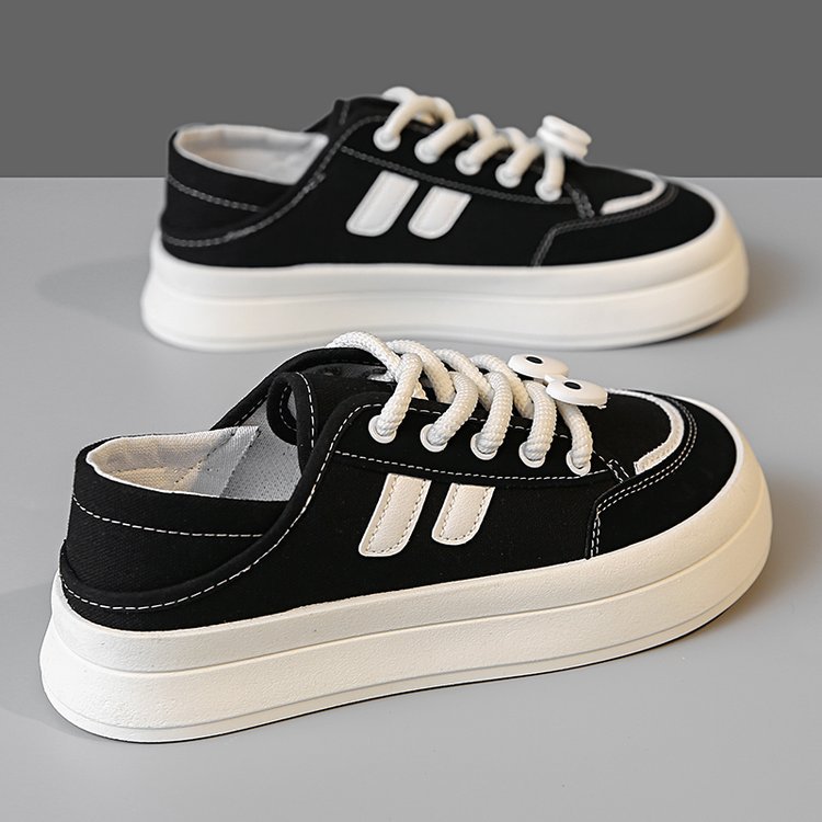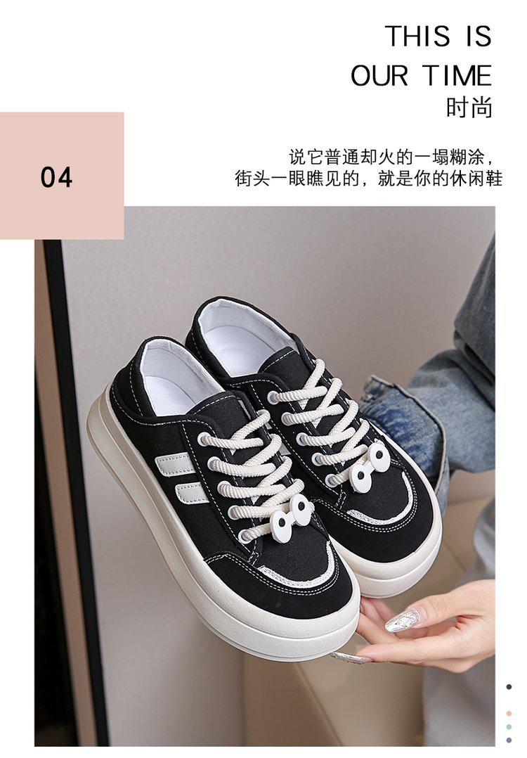 추악한 귀여운 둥근 머리 2024 년 여성을위한 두 개의 캔버스 신발 캠퍼스 스타일 한 페달 반 드래그 작은 검은 신발스토어 가기