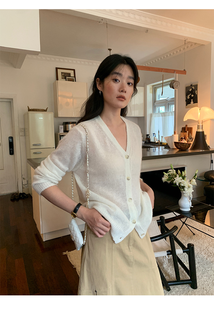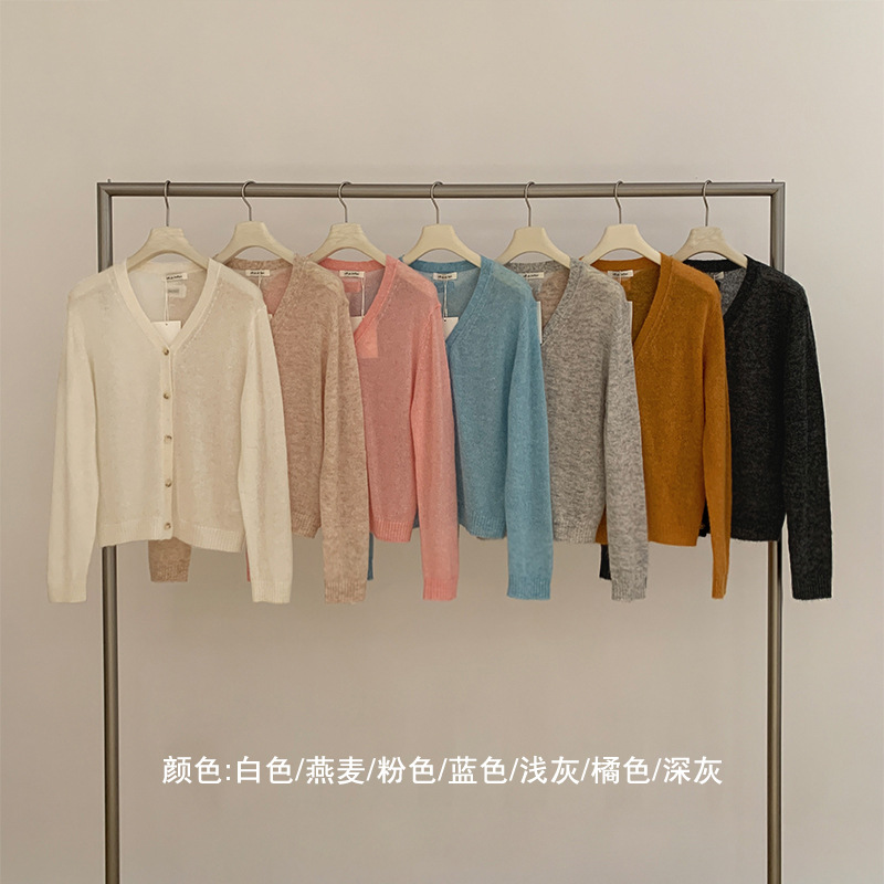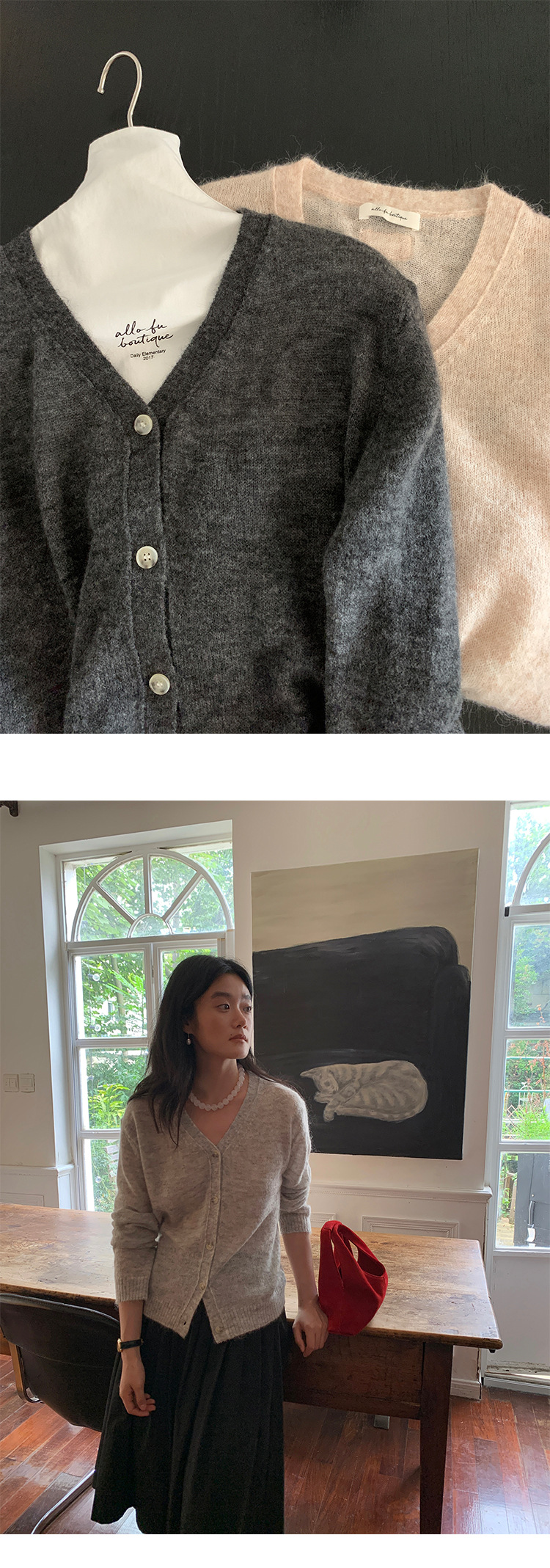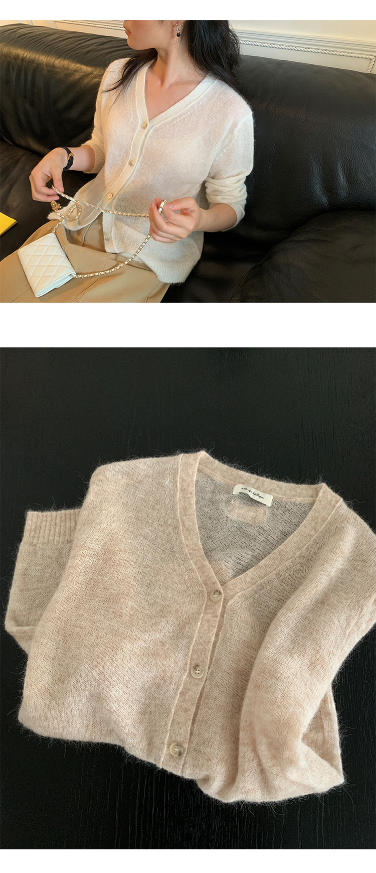 Allo 여자 V 넥 니트 카디건 여자 2024 가을 새 싱글 브레스트 알파카 스웨터 LU-836