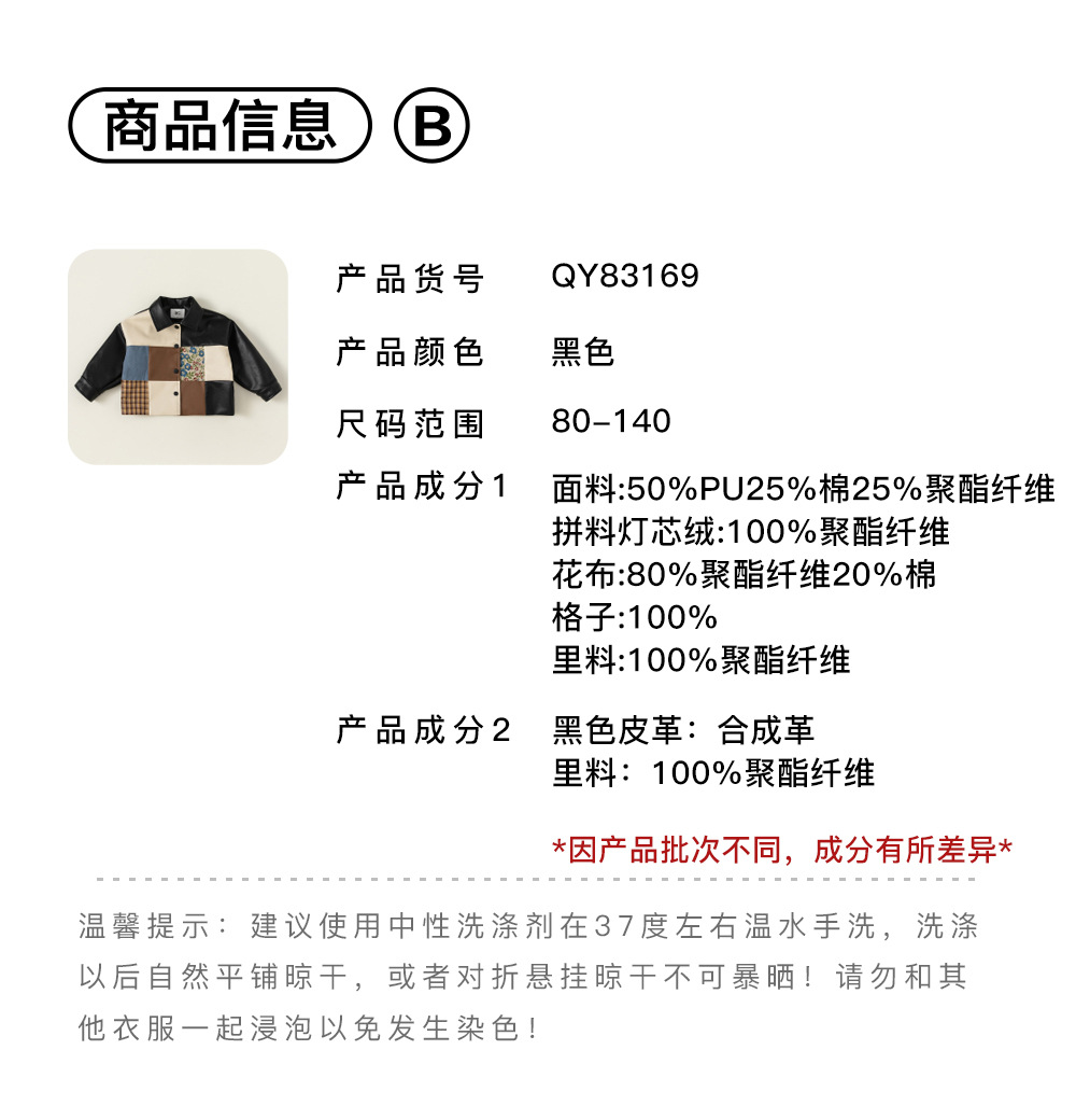 봉, 아동복 소년 자켓 패션 컬러 매칭 아티스틱 자켓 걸스 긴소매 노르딕 스타일 서양식 가죽 의류 선정