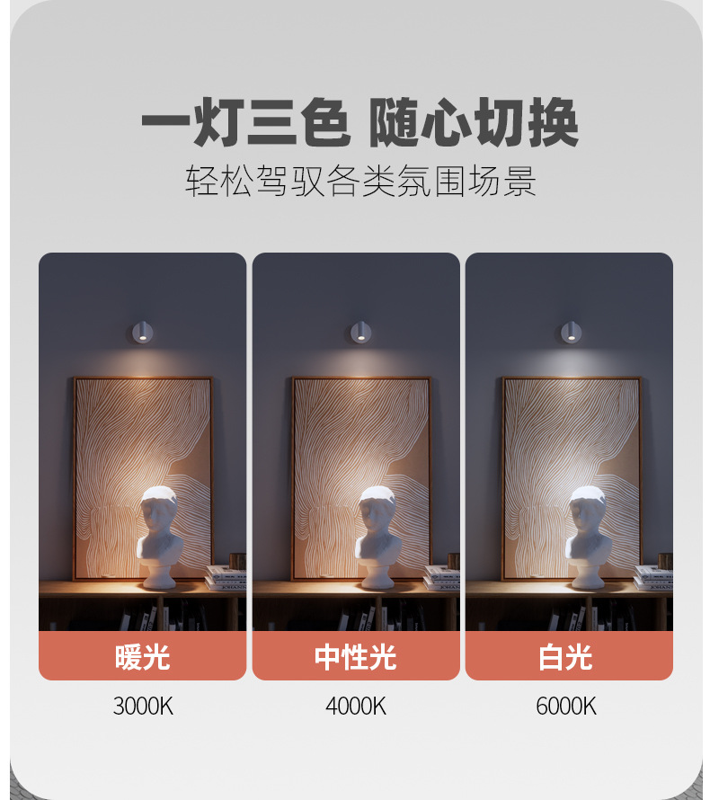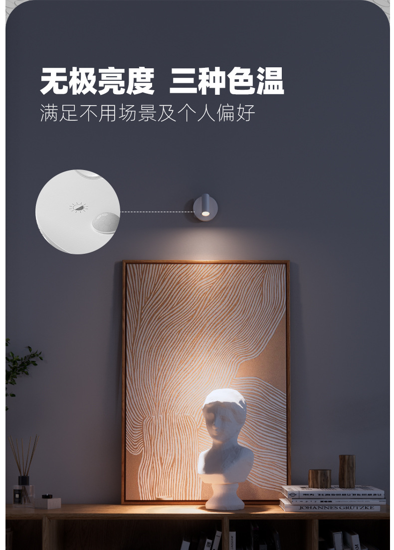 • 매트 화이트/2200mAh/상시 켜짐 + 센서 + 디밍 및 색상 조정 + 자기 흡입