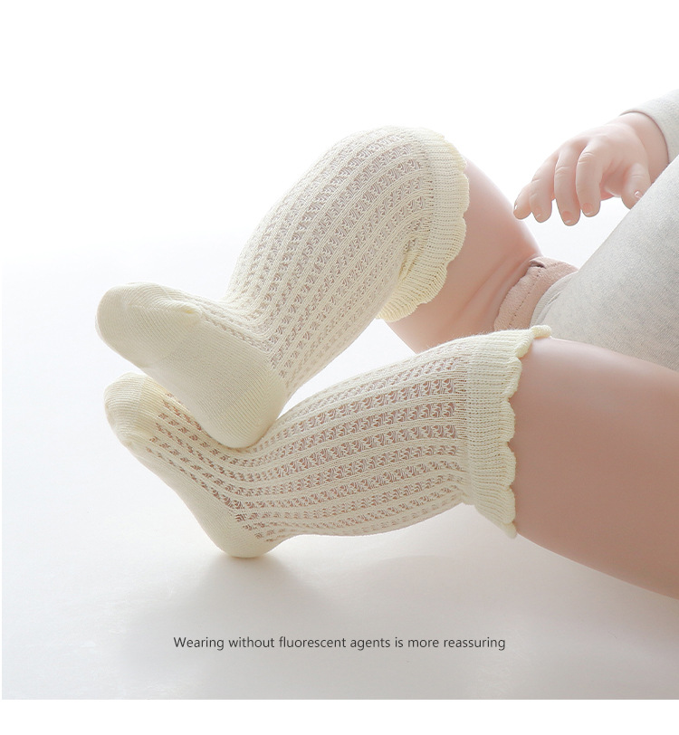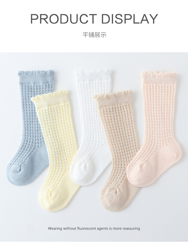 여름 메시 울트라 얇은 아기 양말 솔리드 컬러 인 레이스 프린세스 스타일 롱 배럴 뼈없는 순수 코튼 걸스 송아지 양말