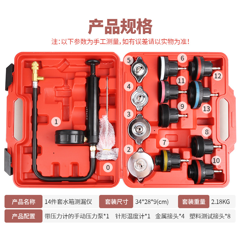 자동차 물 탱크 압력 게이지 누출 탐지기 테스터 14 조각 부동액을 변경하고 진공 압력 게이지 감지 도구를 채 웁니다.