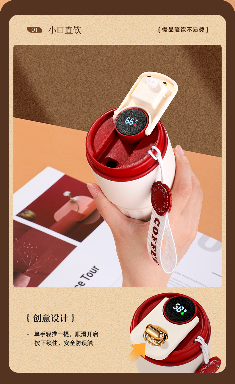 지능형 온도 디스플레이 316 스테인레스 스틸 커피 컵 더블 진공 보온병 컵 휴대용 로프 컵 도매스토어 가기