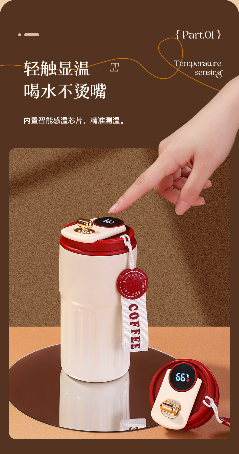 지능형 온도 디스플레이 316 스테인레스 스틸 커피 컵 더블 진공 보온병 컵 휴대용 로프 컵 도매