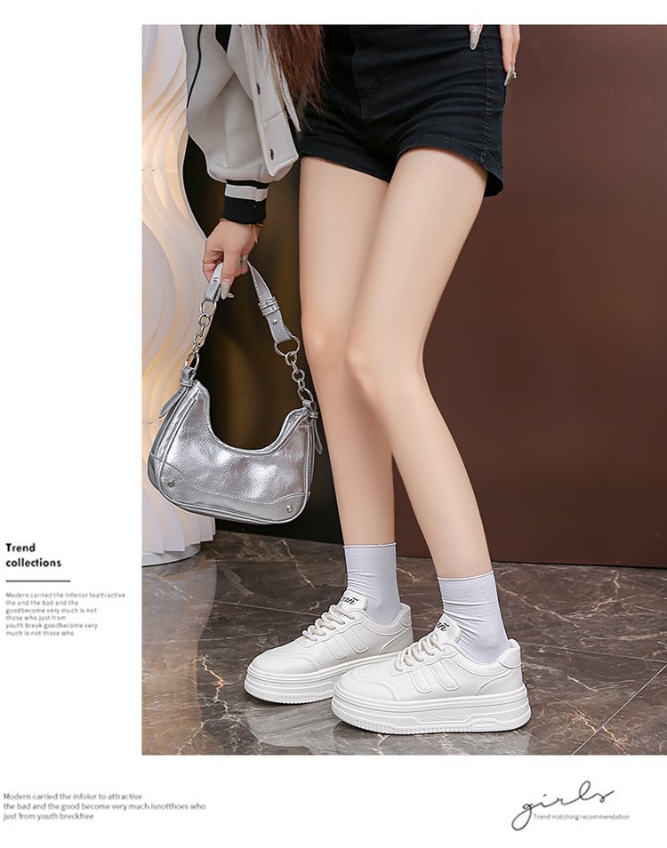 흰색 간단한 두꺼운 밑창 흰색 신발 여성 신발 2024 봄과 가을 새로운 올 매치 신발 틈새 학생 캐주얼 보드 신발스토어 가기
