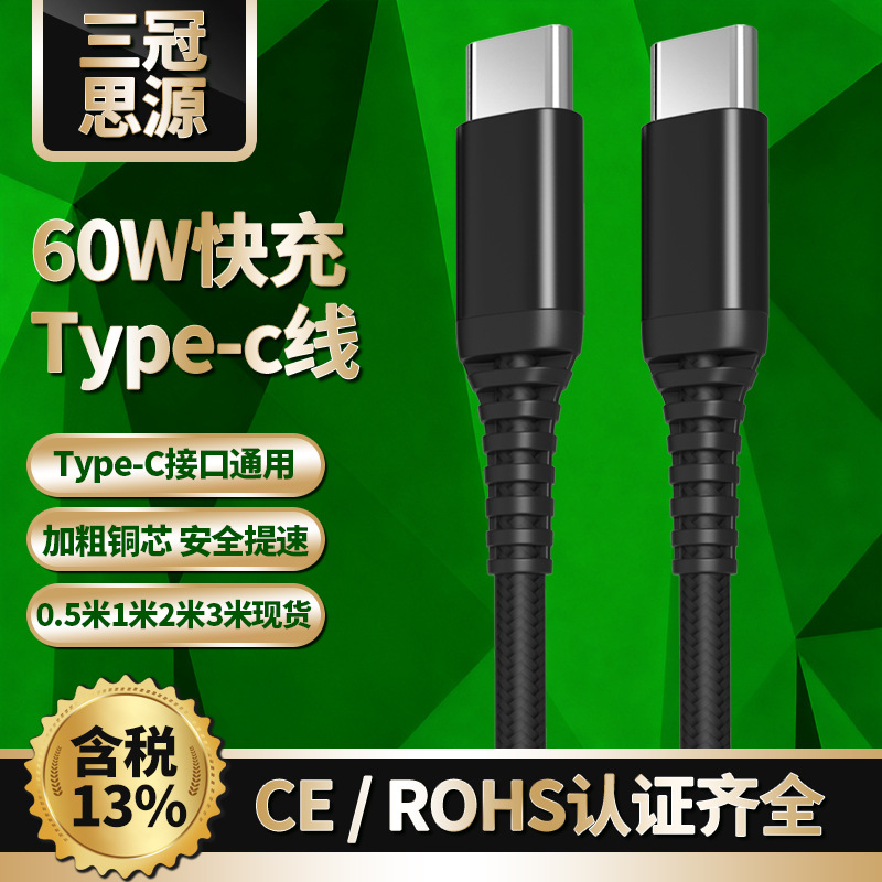 애플 15 안드로이드 폰 화웨이 충전 라인에 적합한 남성 PD60W 빠른 충전에 재고 더블 헤드 유형-c 남성