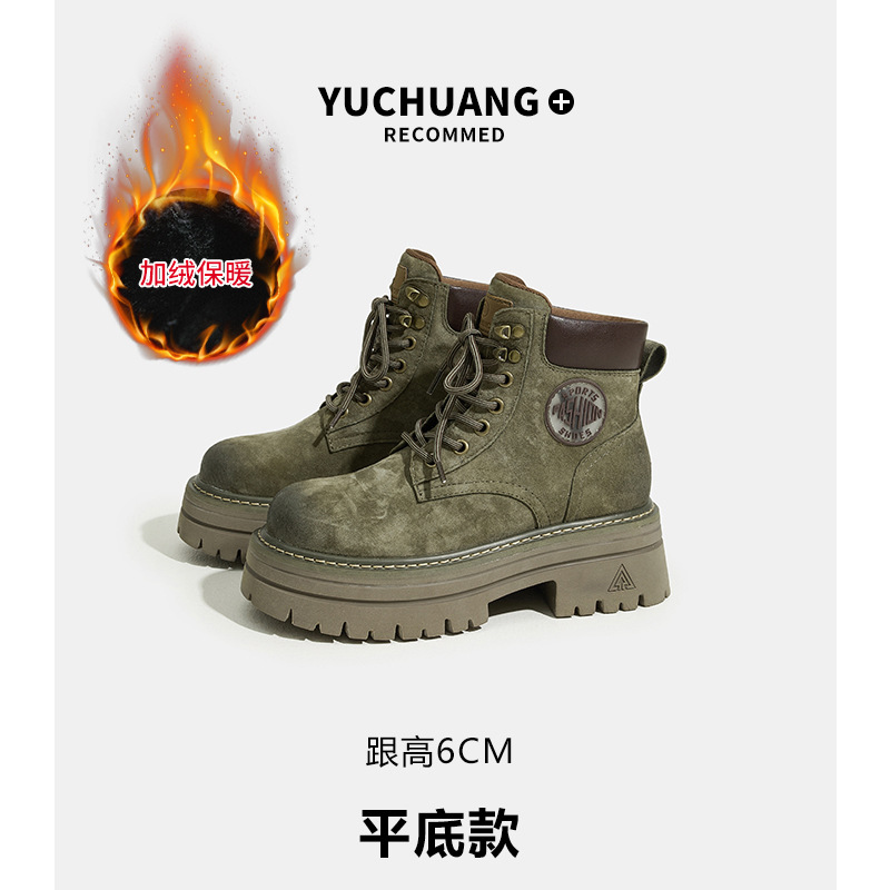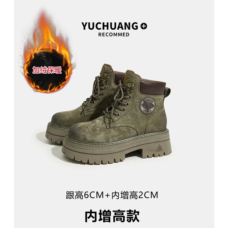 내부 키높이 가죽 두꺼운 밑창 마틴 부츠 여성용 2025 가을 신상 캐주얼 패션 숏부츠 다용도 핑크 부츠 여성용스토어 가기