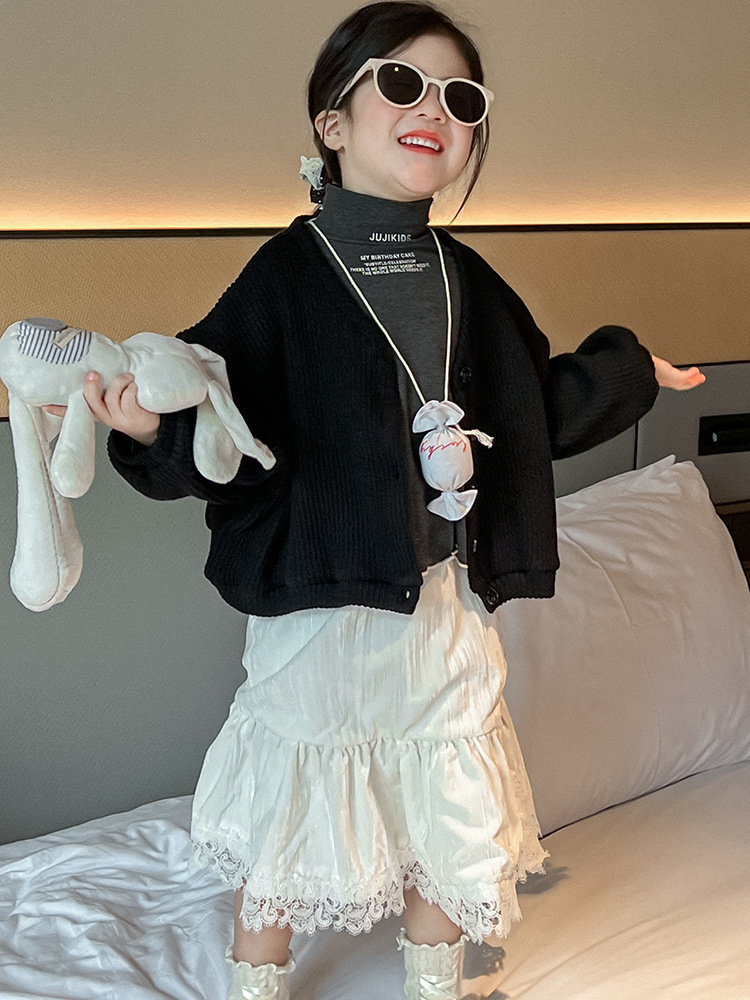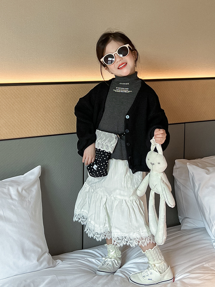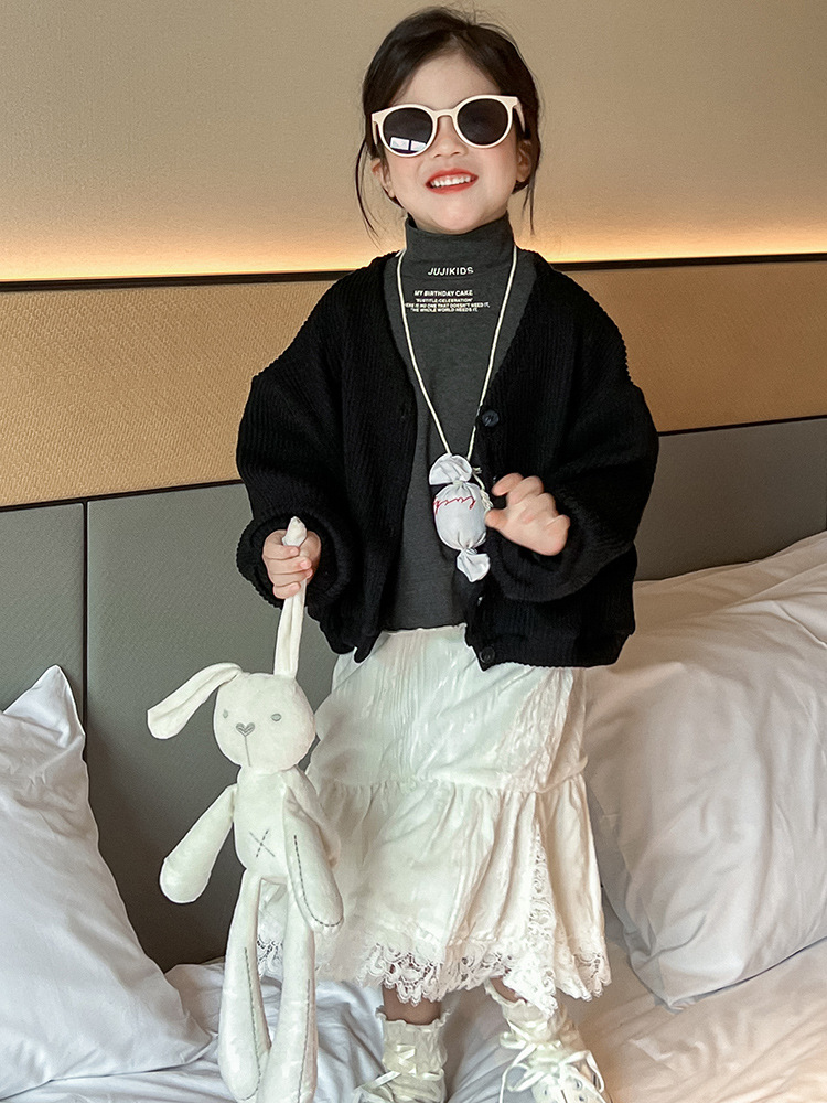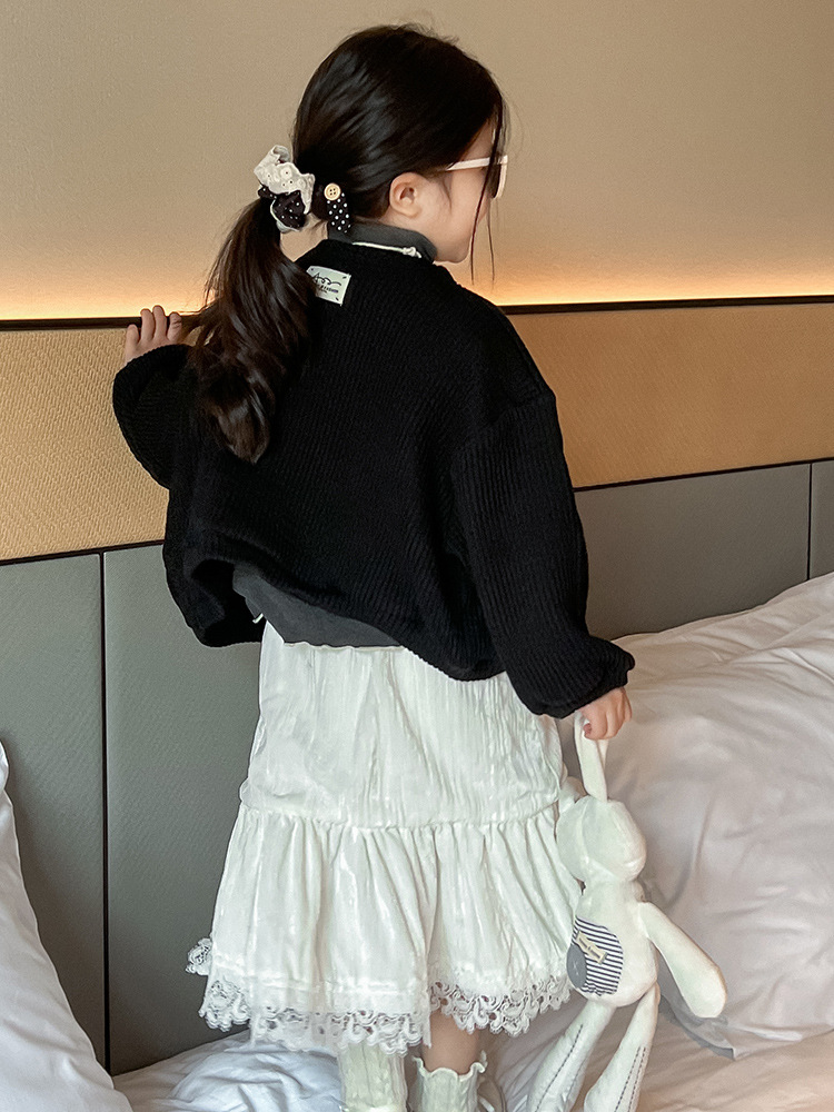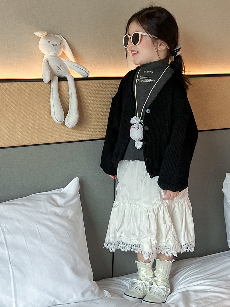 기질 한국 스타일 세트 2024 가을 새 편지베이스 셔츠 니트 카디건 코트 레이스 스커트스토어 가기