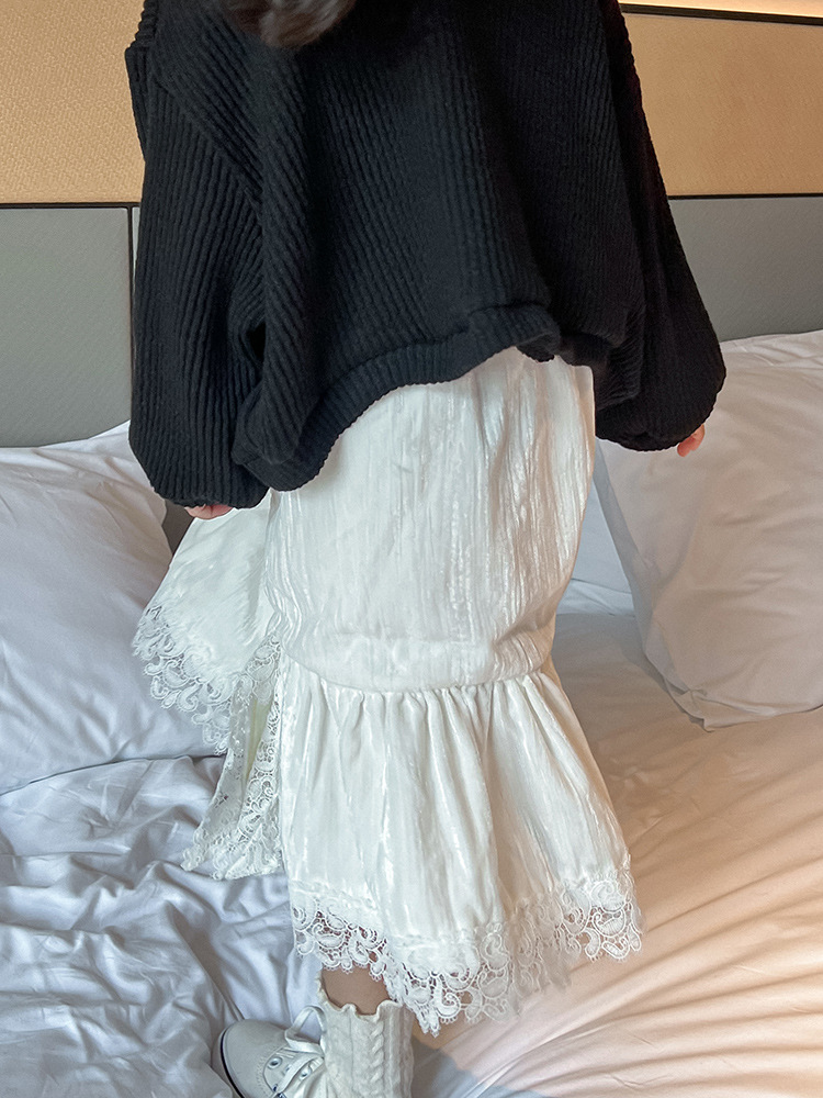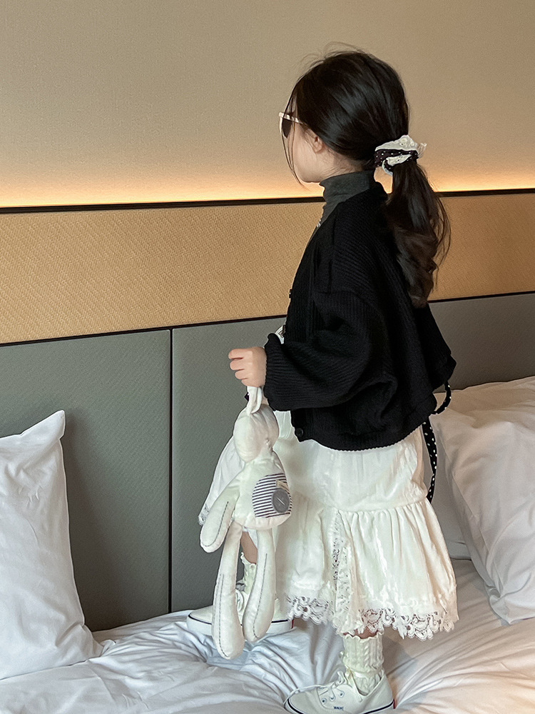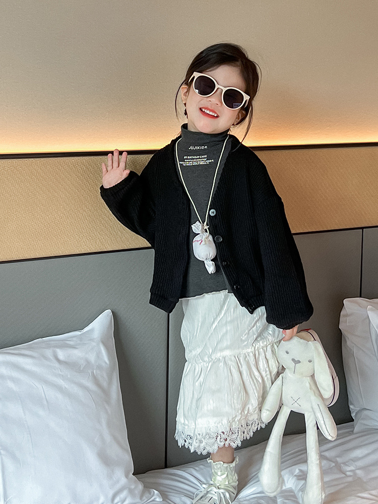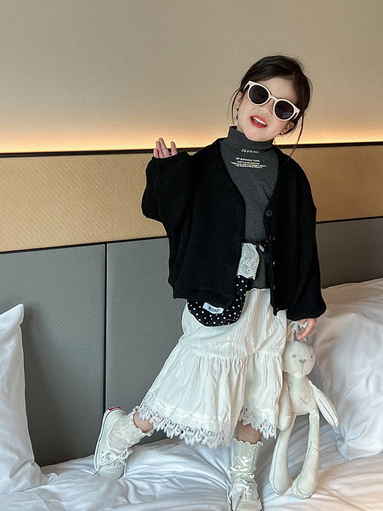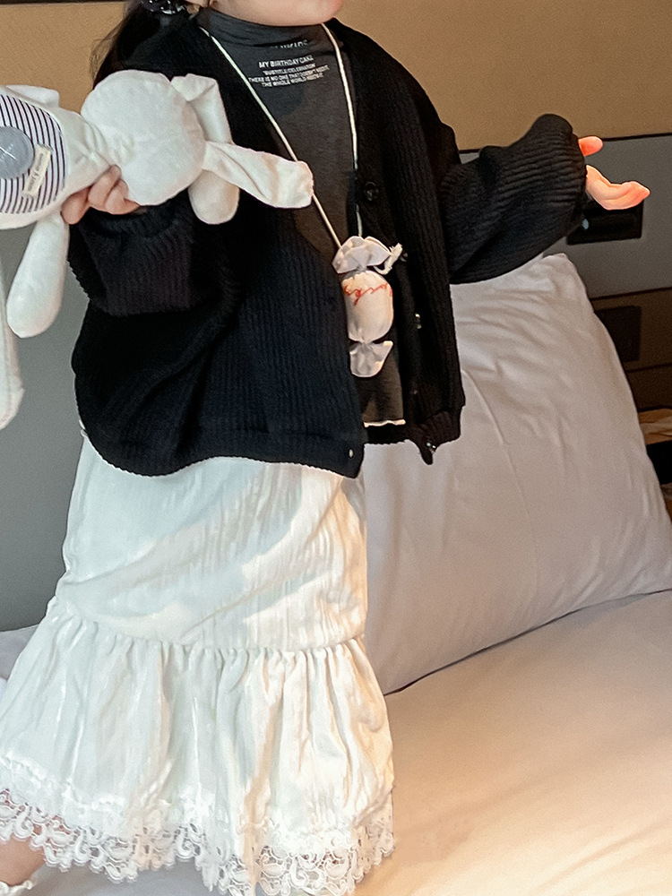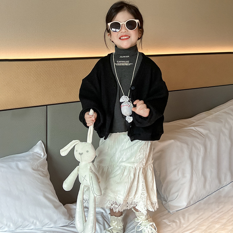 기질 한국 스타일 세트 2024 가을 새 편지베이스 셔츠 니트 카디건 코트 레이스 스커트스토어 가기