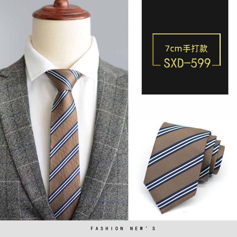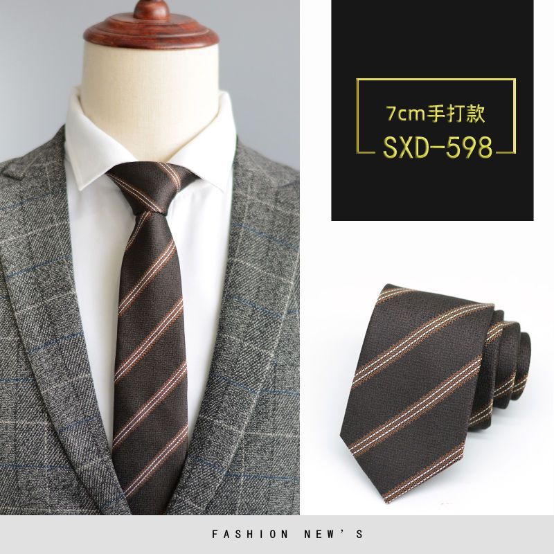 넥타이 남자 원피스 비즈니스 전문 셔츠 액세서리 7CM 수제 한국 스타일 영국 커피 스트라이프 학생 패션스토어 가기