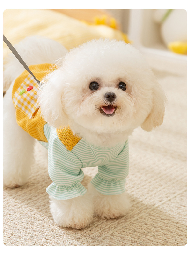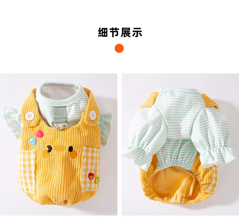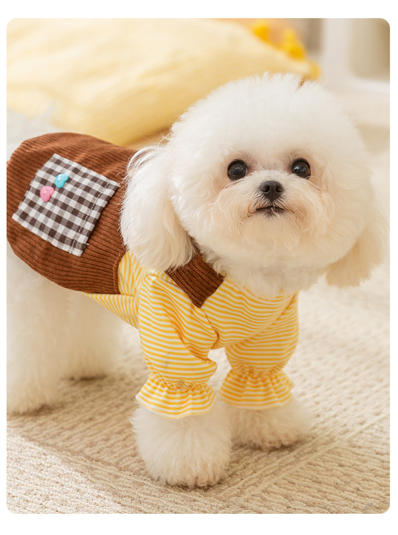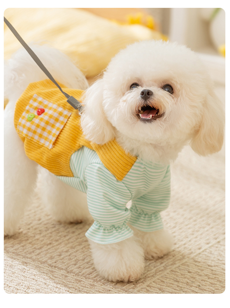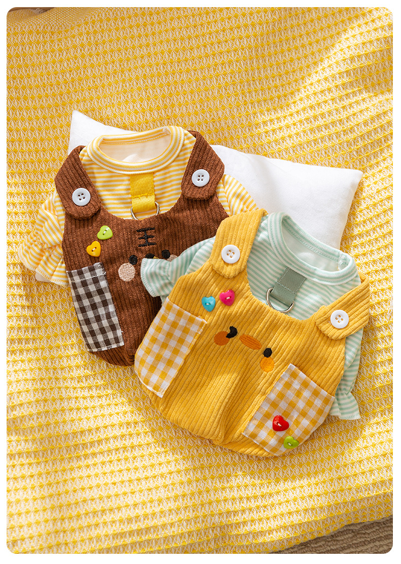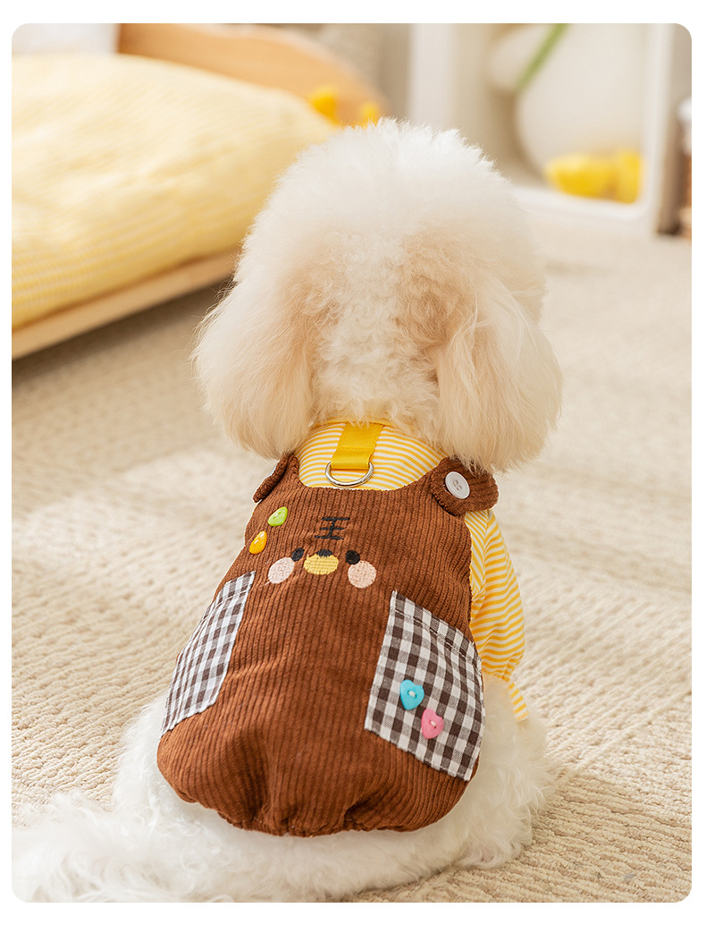 가을, 겨울 개 귀여운 만화 격자 무늬 주머니 작은 동물 두 발 스트랩 바지 고양이 따뜻한 애완 동물 개 옷스토어 가기