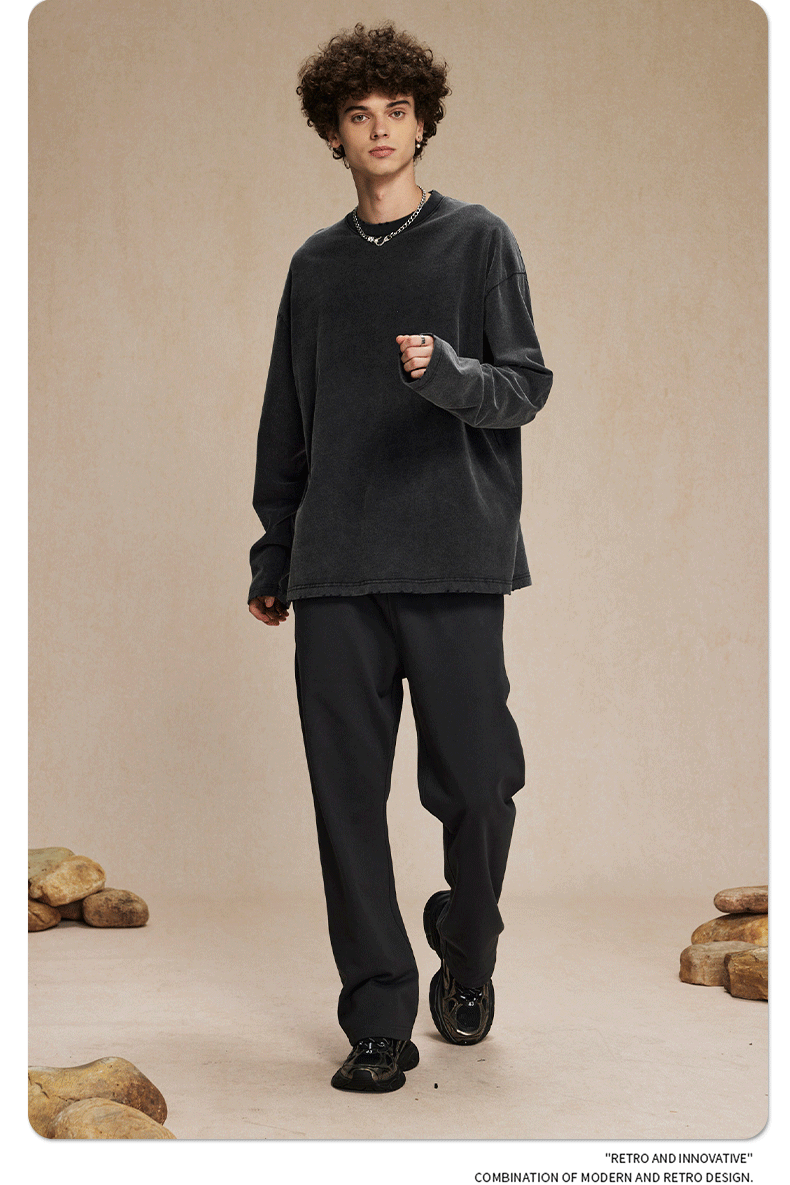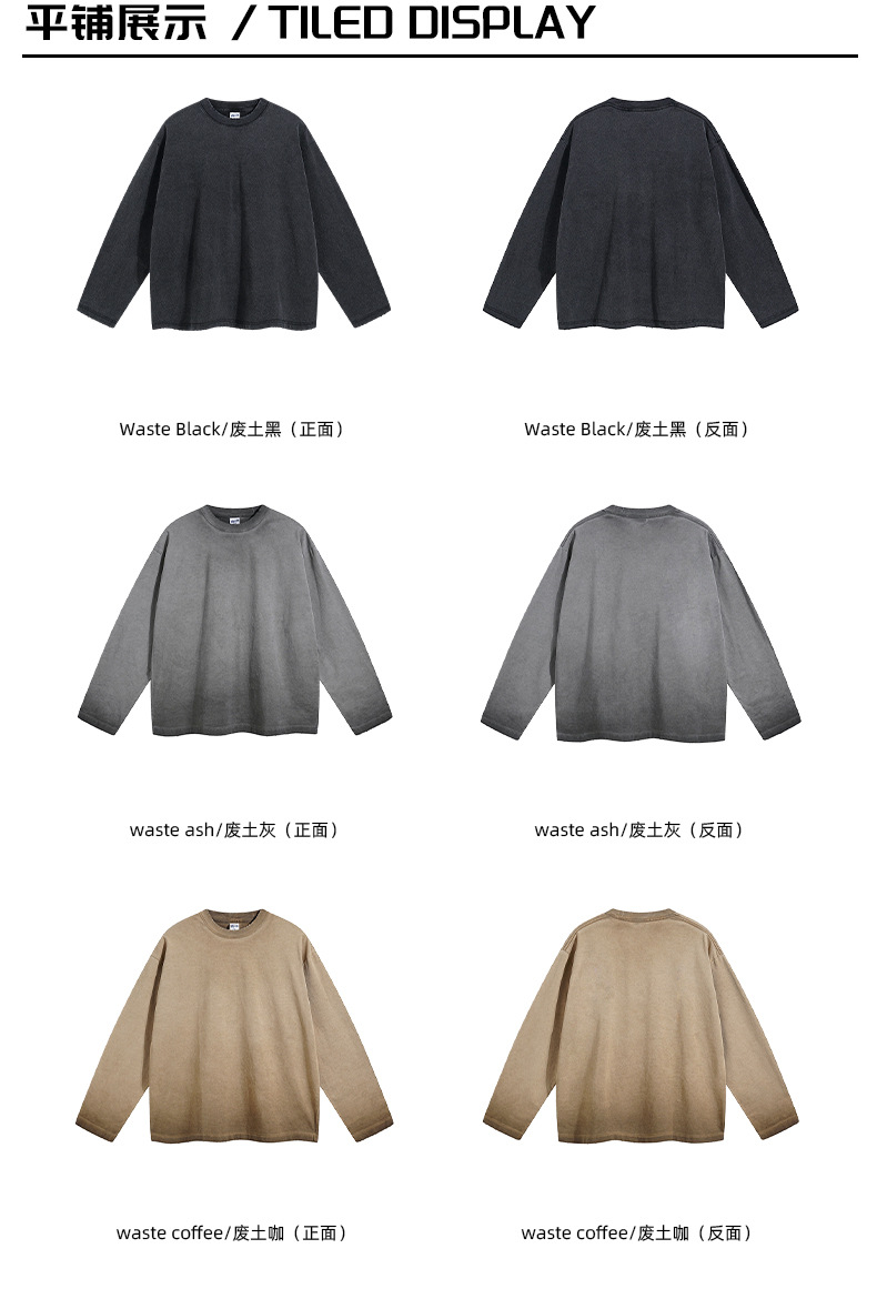 2024 가을 스타일 더티 워시드 워시드 레트로 긴팔 남성 리버스 바닥 프라이드 컬러 스트리트 패션 브랜드 티셔츠 남성 스웨트 셔츠스토어 가기