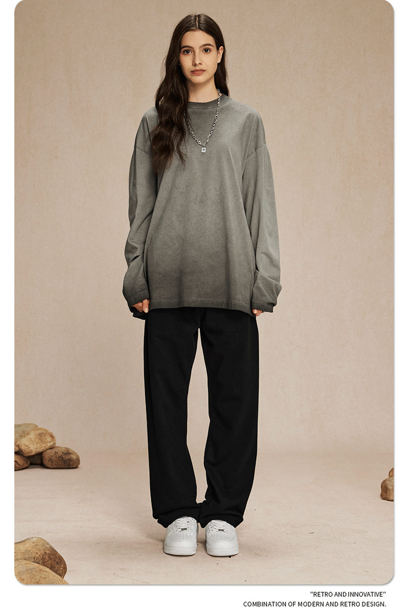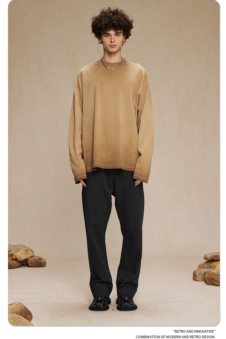 2024 가을 스타일 더티 워시드 워시드 레트로 긴팔 남성 리버스 바닥 프라이드 컬러 스트리트 패션 브랜드 티셔츠 남성 스웨트 셔츠
