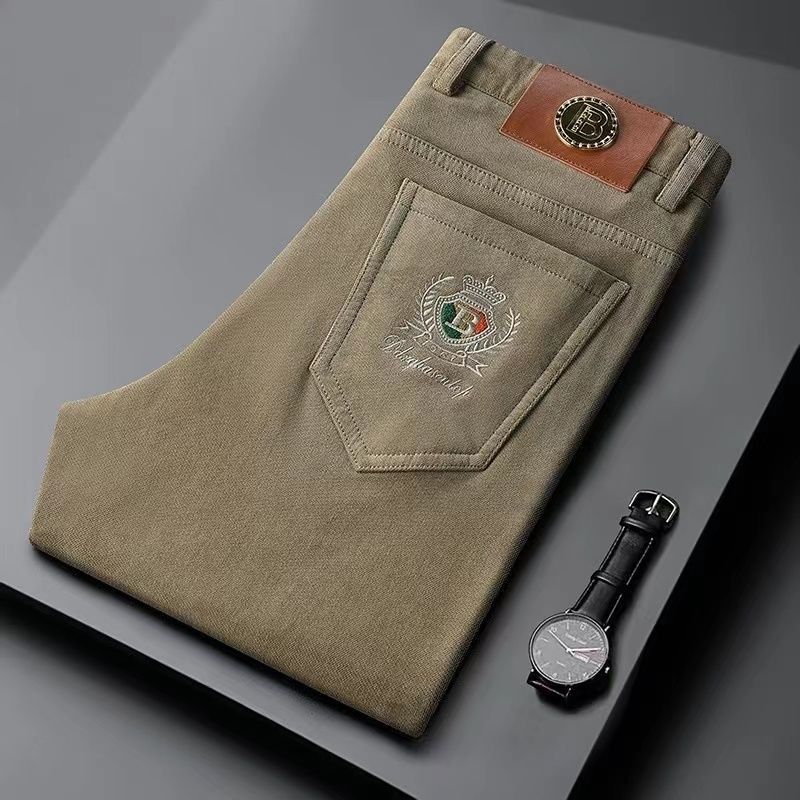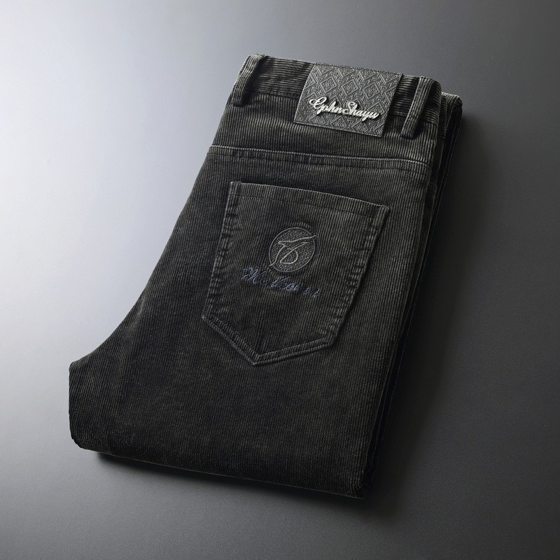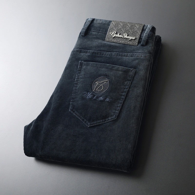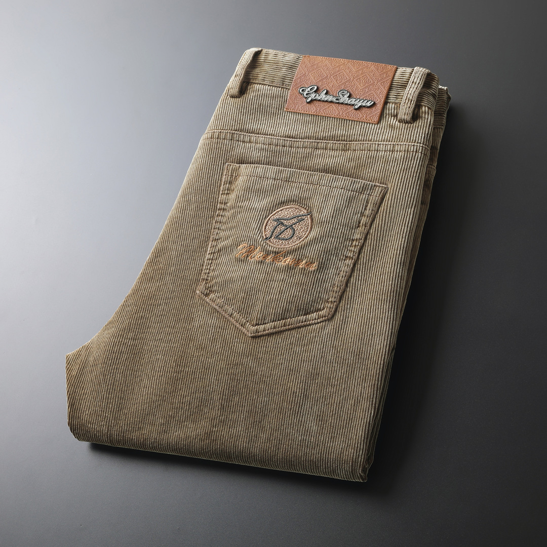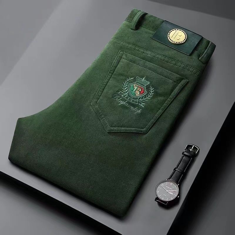 고급 코듀로이 남성용 바지 가을과 겨울 코듀로이 가벼운 럭셔리 비즈니스 남성용 캐주얼 바지 탄성 스트레이트 바지 따뜻한 바지