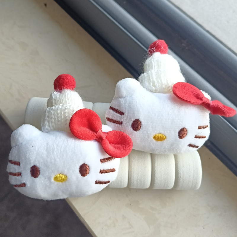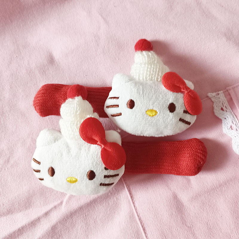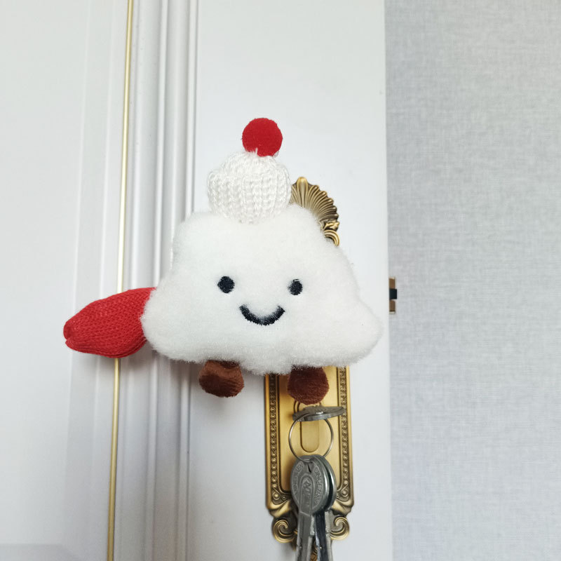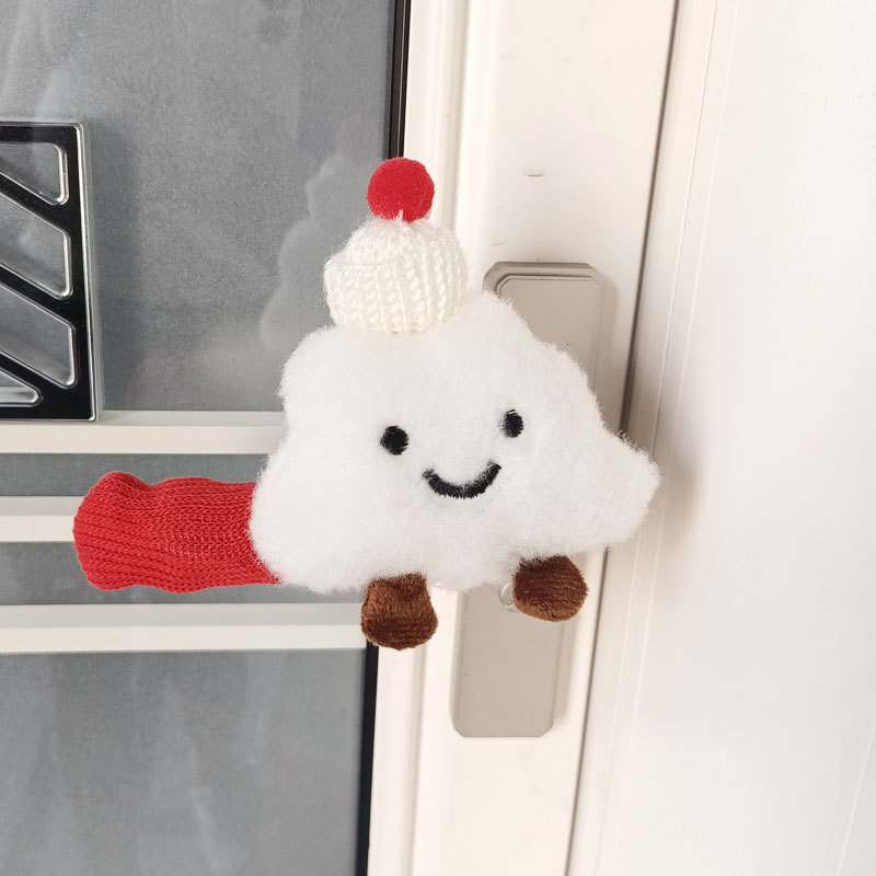 • 빨간색 니트 흰색 모자와 흰색 구름 옆문 손잡이 한 쌍