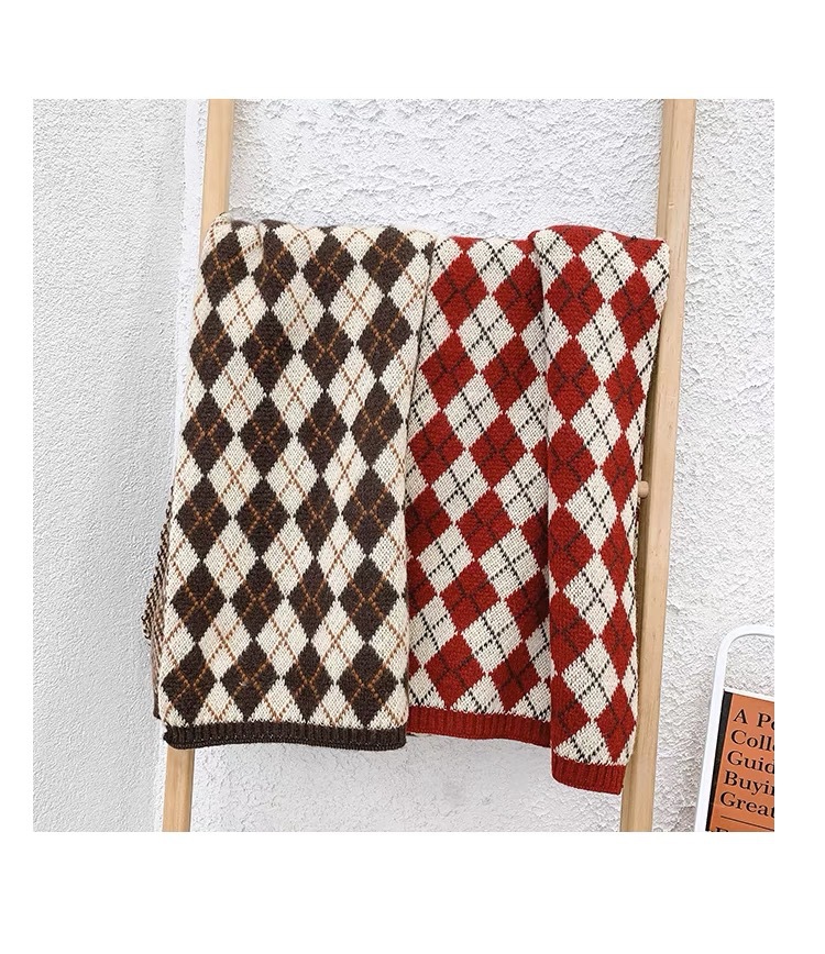 레드 스카프 여성의 겨울 하이 엔드 올 매치 체크 무늬 크리스마스 생일 선물 새해 선물 니트 양모 스카프
