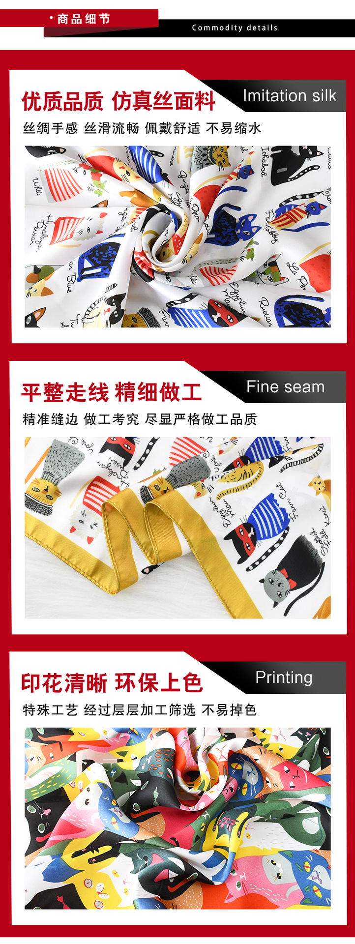 소주와 항주 스카프 만화 고양이 귀여운 조커 70 모방 실크 스카프 분위기 여름 광장 스카프 도매