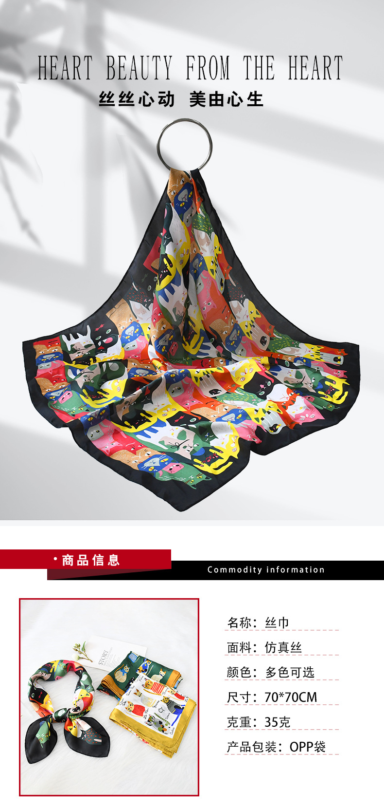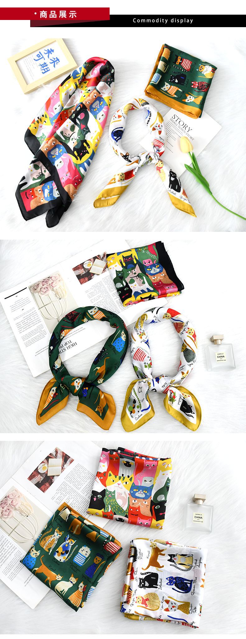 소주와 항주 스카프 만화 고양이 귀여운 조커 70 모방 실크 스카프 분위기 여름 광장 스카프 도매스토어 가기