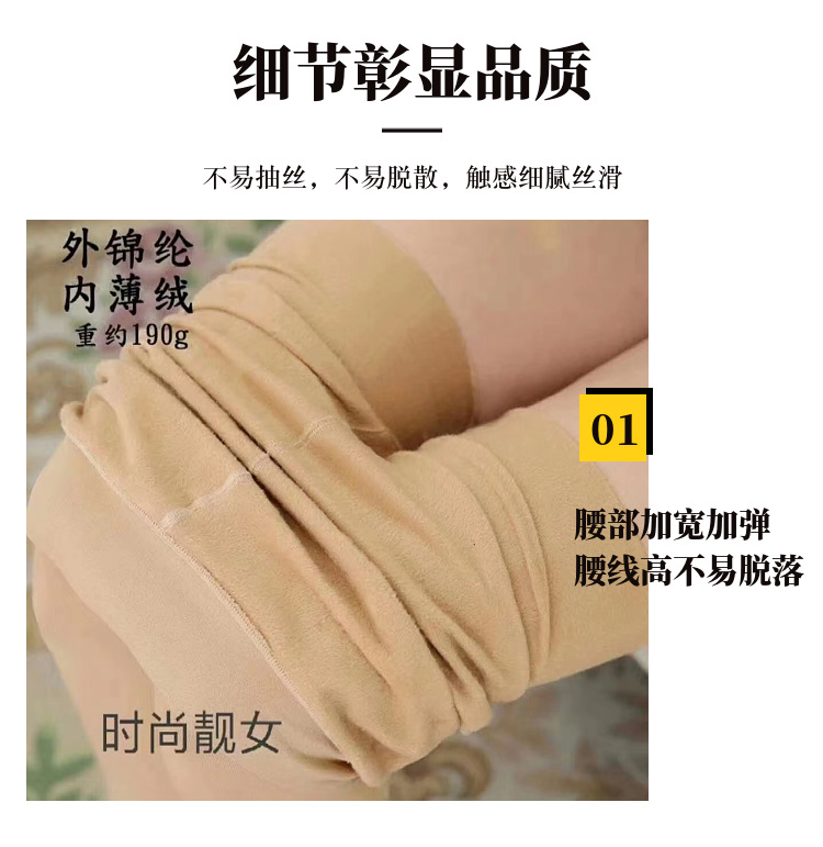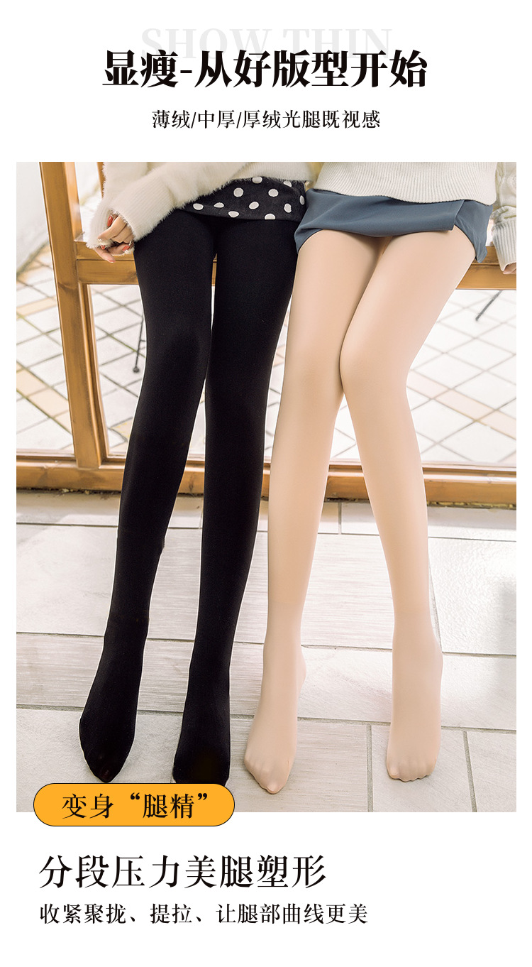 가을과 겨울 여성의 짧은 머리 벗은 안티 후크 실크 스키니 다리 양말 기모 두꺼운 자연 다육 빛 다리 아티팩트 팬티 스타킹