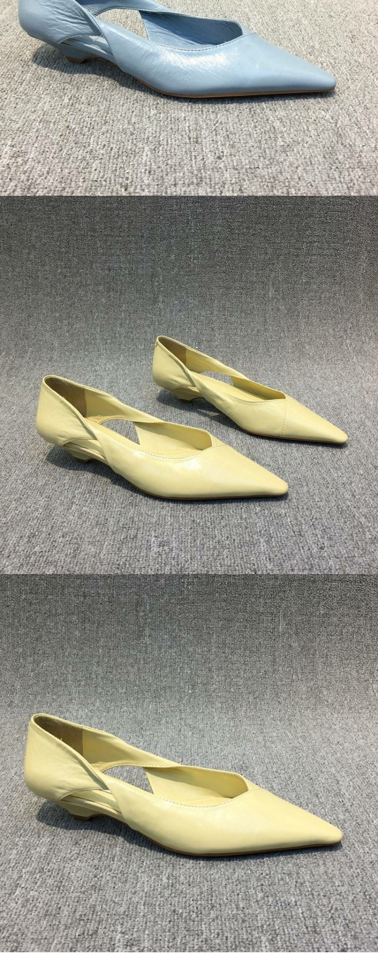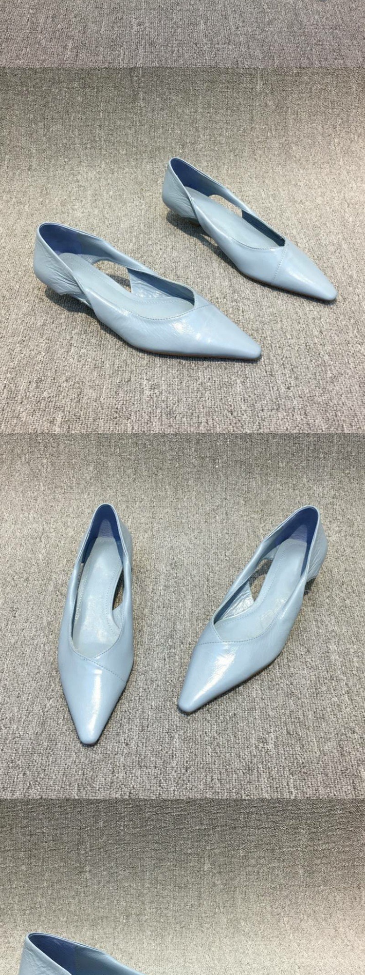 유럽 역 여성 신발 2024 가을 새 스타일 왁스 가죽 유행 중공 고양이 발 뒤꿈치 여성 뾰족한 발가락 편안한 낮은 발 뒤꿈치 싱글 레이어 신발스토어 가기