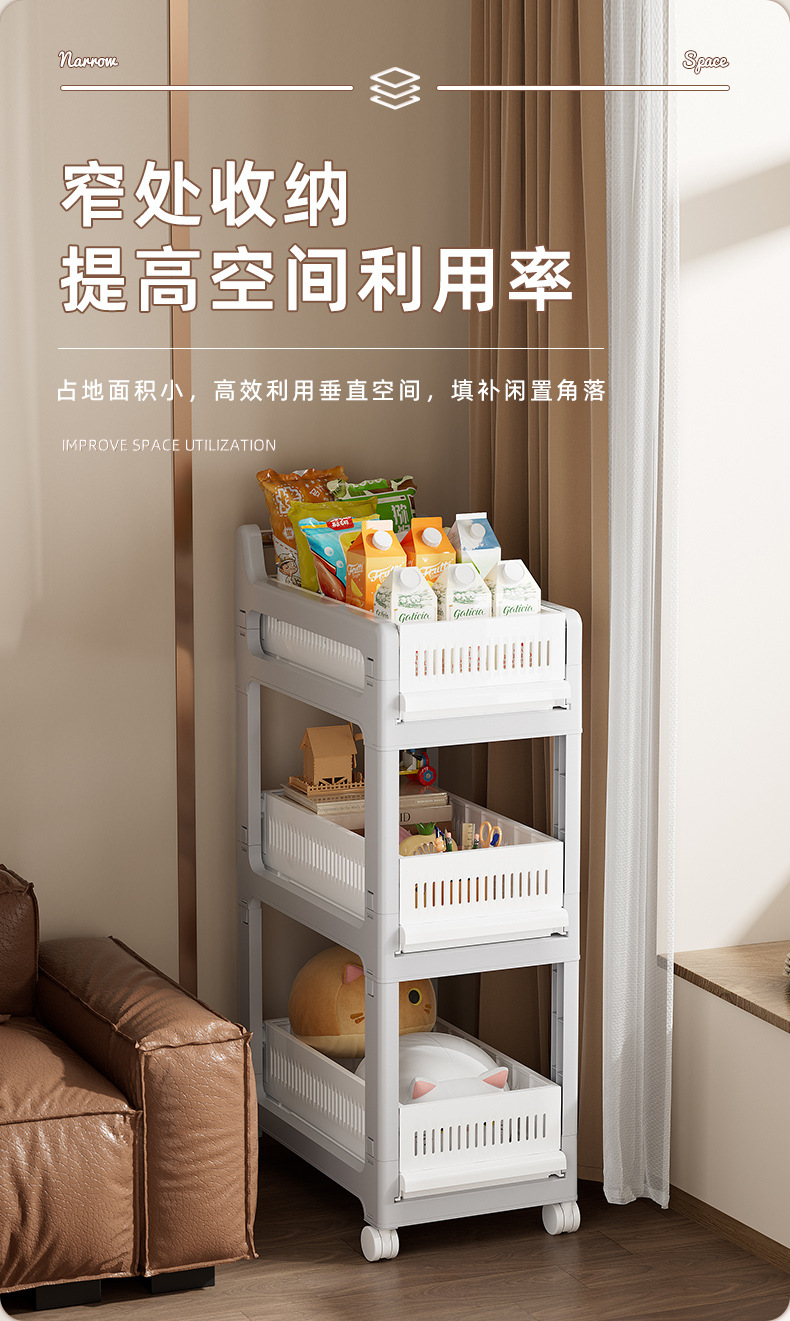 현대 간단한 작은 카트 스토리지 랙 갭 스토리지 다기능 레이어 랙 스낵 북 세미 오픈 플로어 캐비닛