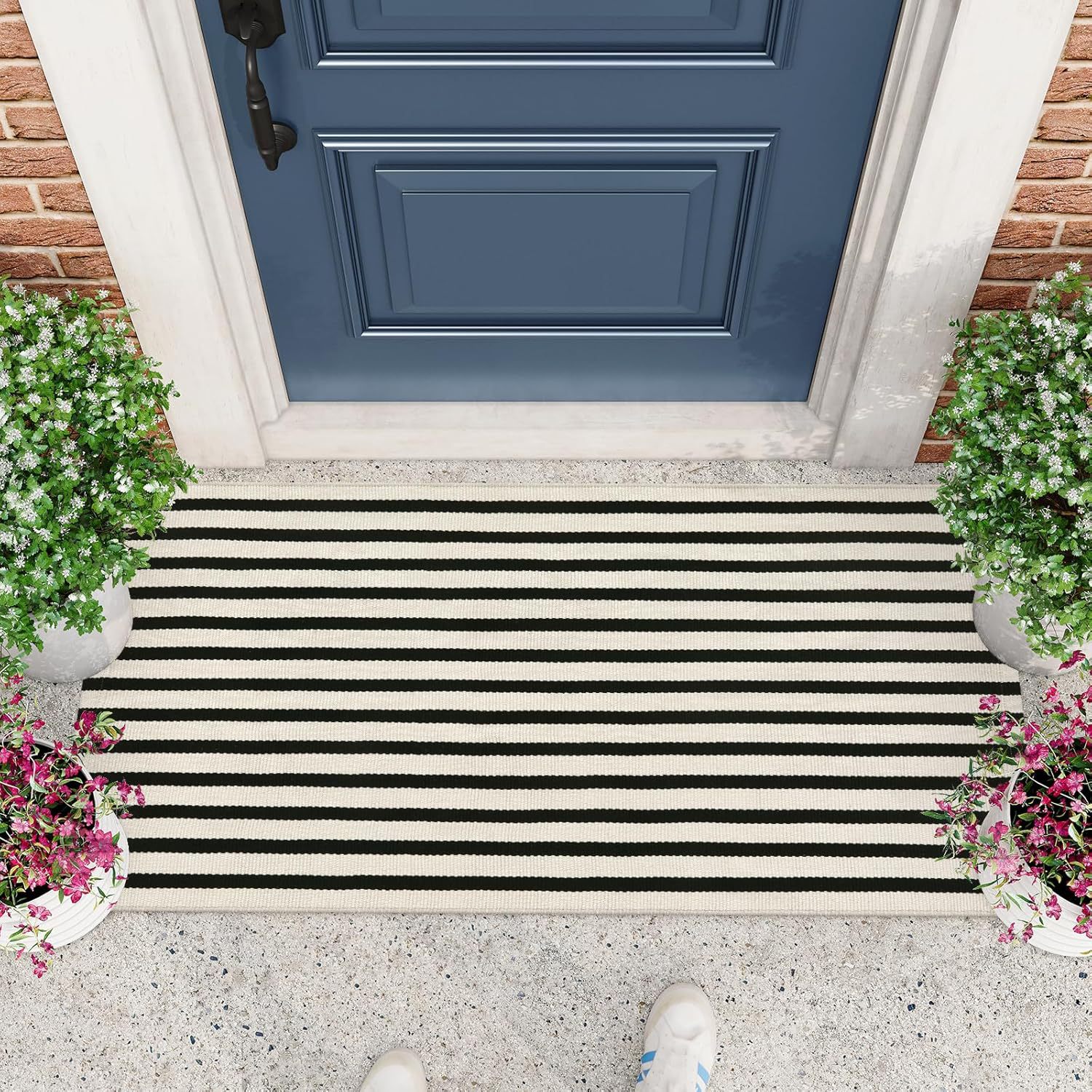 크로스 국경 면화 입구 카펫 기계 세척 가능한 줄무늬 현관 카펫 실내 야외 카펫 바닥 매트 도매