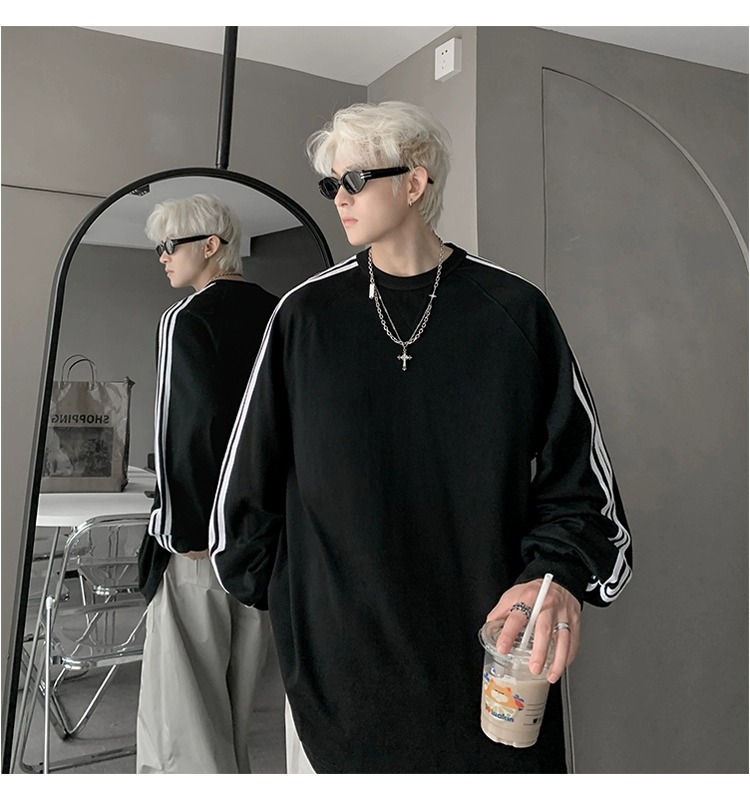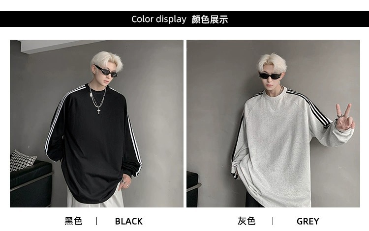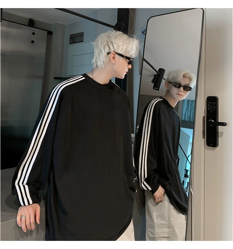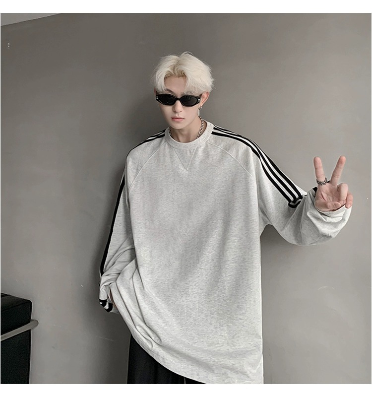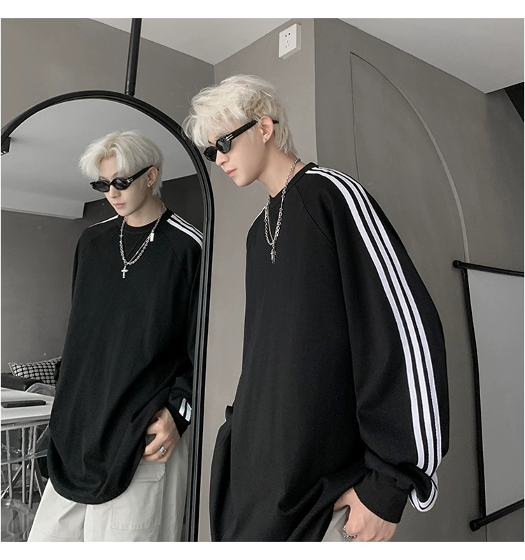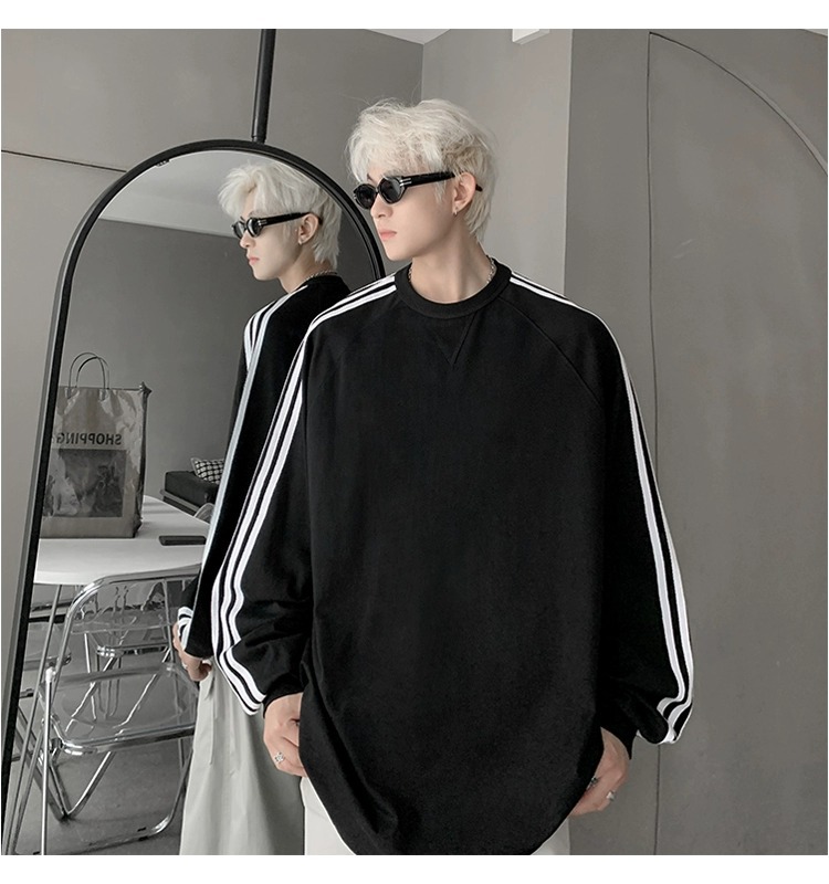 미국식 헤비 3 바 크루 넥 남학생을위한 긴팔 스웨터 2024 봄과 가을 패션 브랜드 루즈 캐주얼 후드 자켓스토어 가기