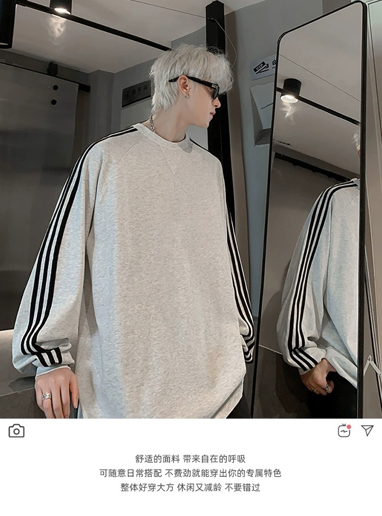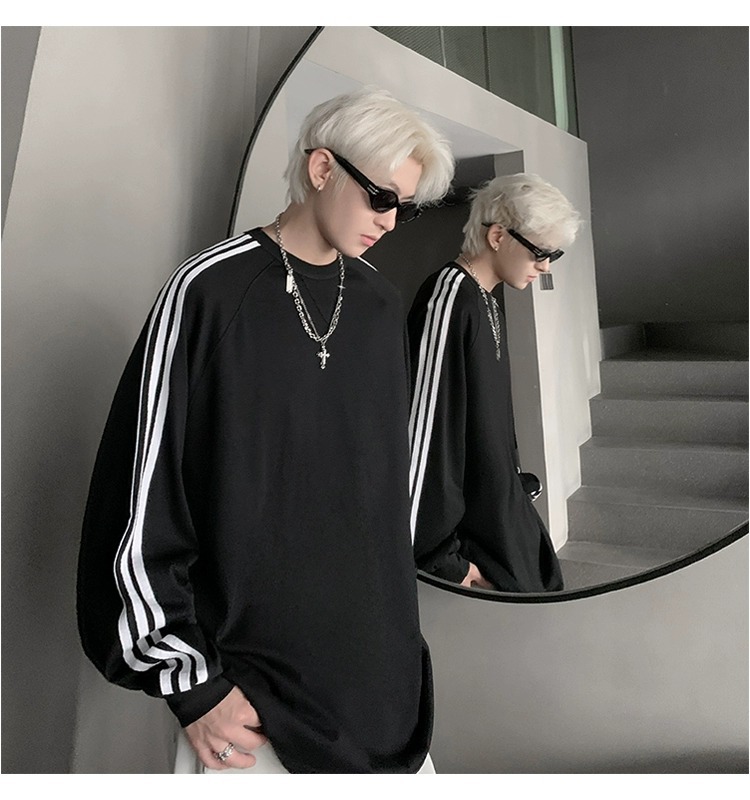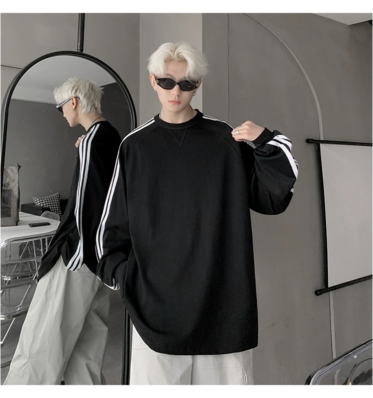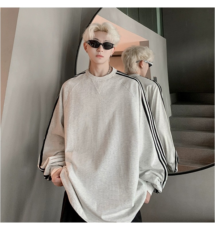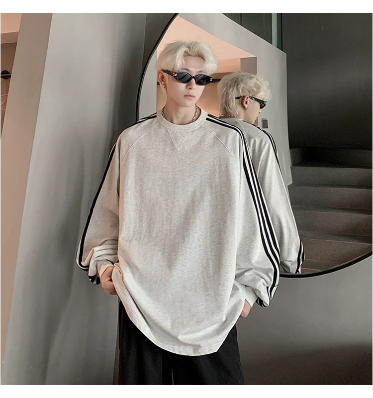 미국식 헤비 3 바 크루 넥 남학생을위한 긴팔 스웨터 2024 봄과 가을 패션 브랜드 루즈 캐주얼 후드 자켓스토어 가기