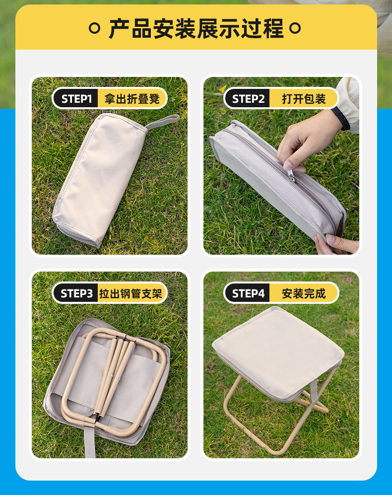 국경을 넘는 판매를 위한 야외용 초경량 탄소강 접이식 의자, 핸드백 의자, 캠핑 낚시 의자, 미니 포켓 의자, 소형 접이식 의자스토어 가기