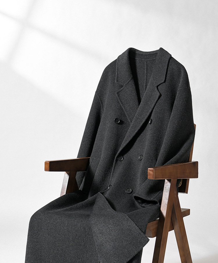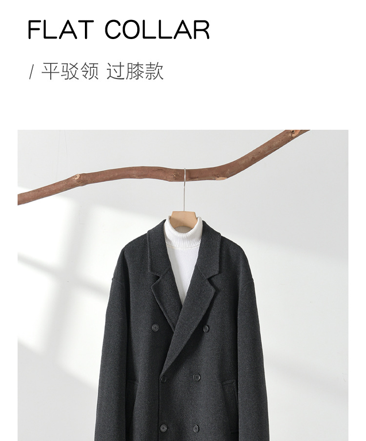 가을, 겨울 양면 양 캐시미어 코트 남성용 긴 무릎 길이 더블 브레스트 느슨한 한국 스타일 모직 윈드 브레이커 코트