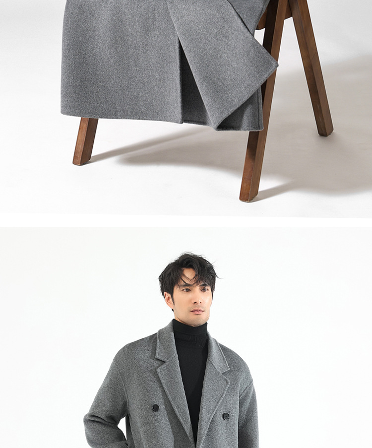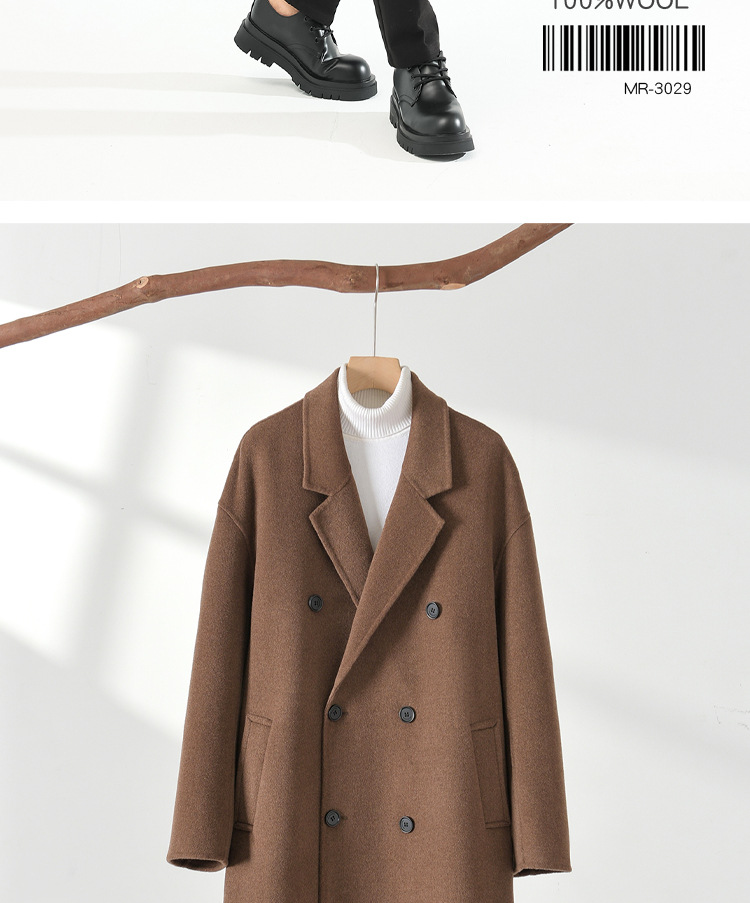 가을, 겨울 양면 양 캐시미어 코트 남성용 긴 무릎 길이 더블 브레스트 느슨한 한국 스타일 모직 윈드 브레이커 코트스토어 가기