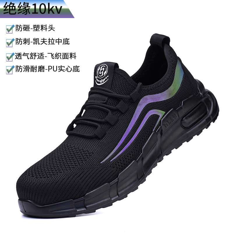 새로운 스타일의 노동 보호 신발 남성용 여름 통기성 탈취제 경량 소프트 하단 플라이 짠 안티 스매싱 안티 스매싱 안전 절연 신발 10kv