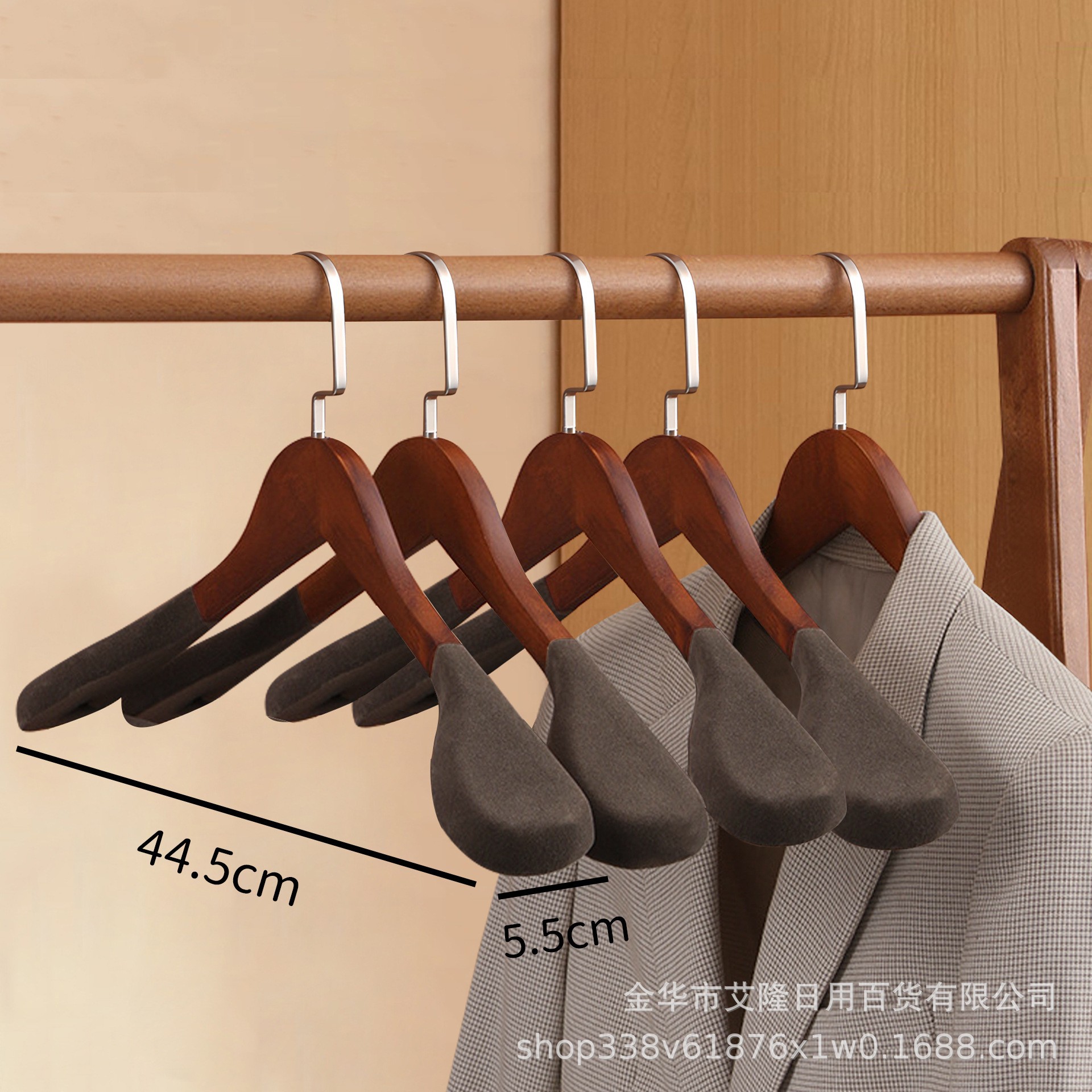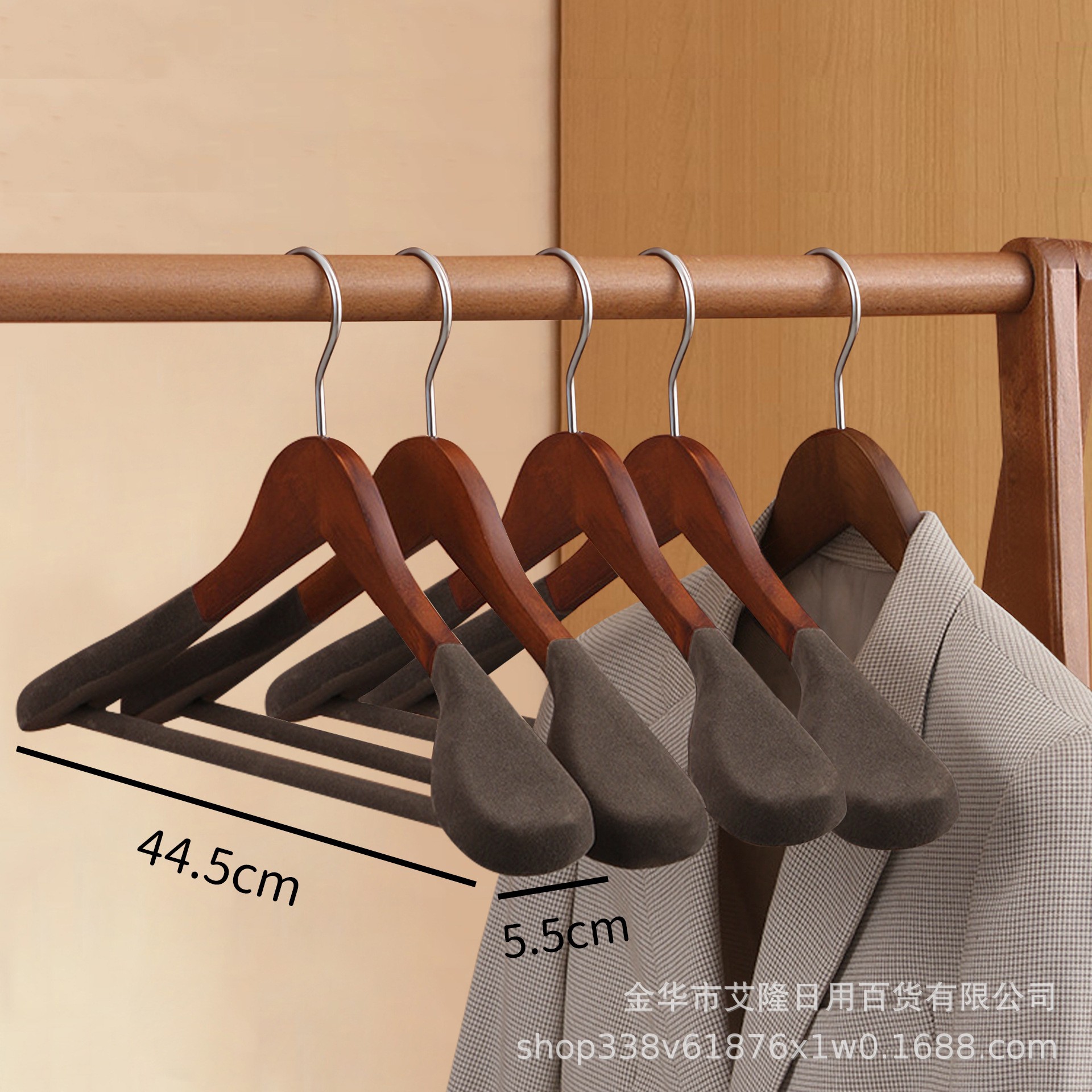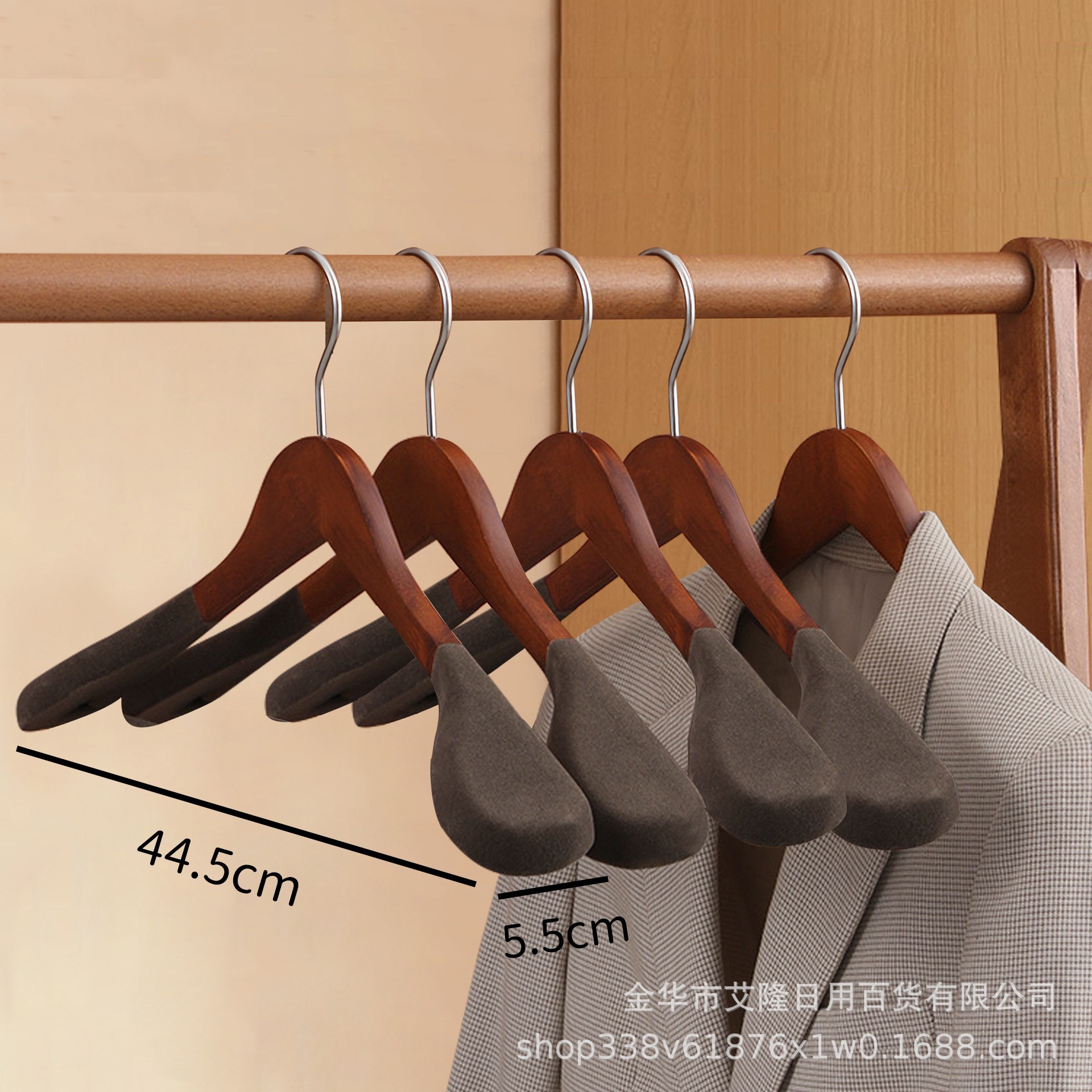 宽肩植绒衣架木质西装大衣无痕家用衣撑成人无痕实木衣架衣挂批发