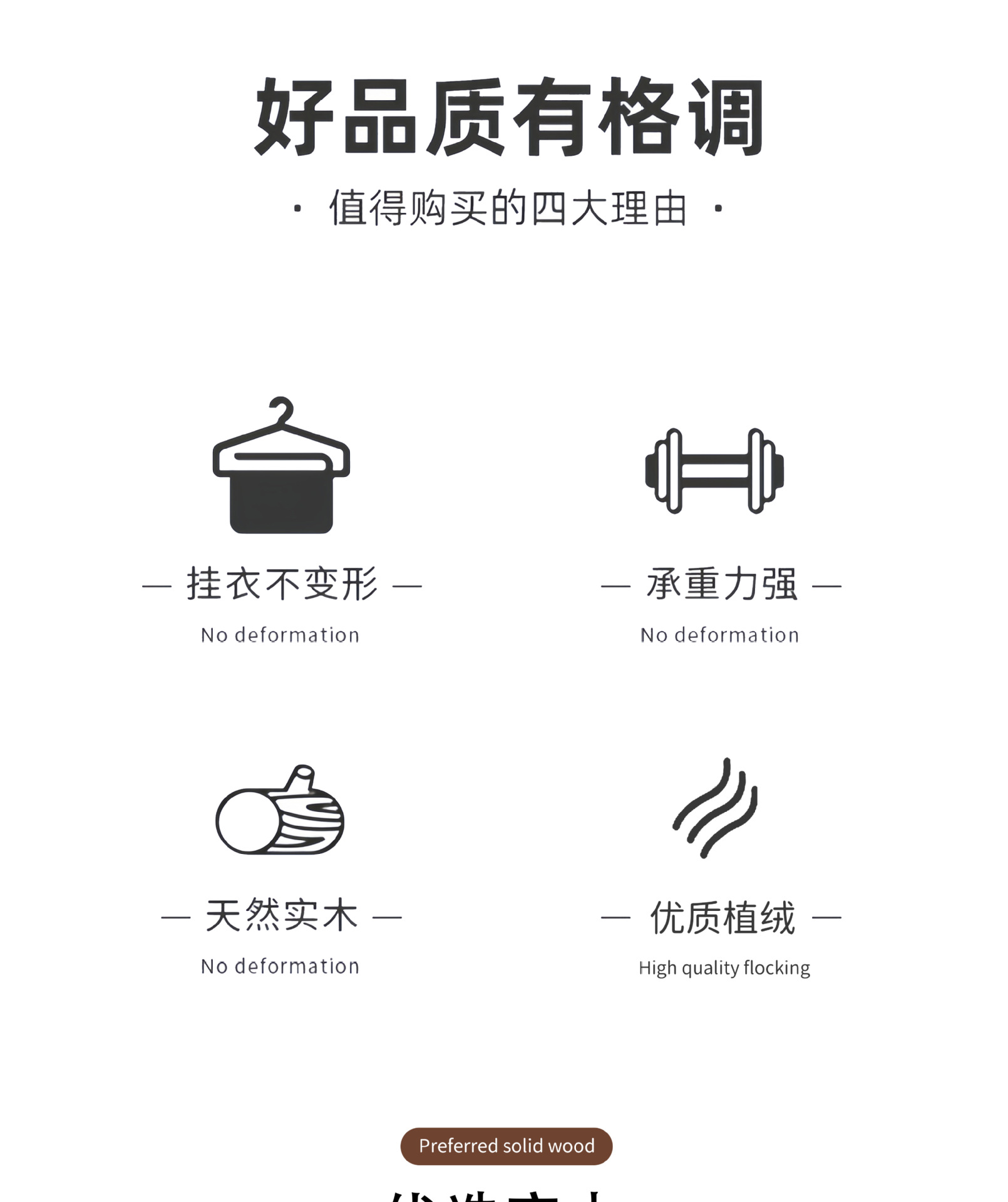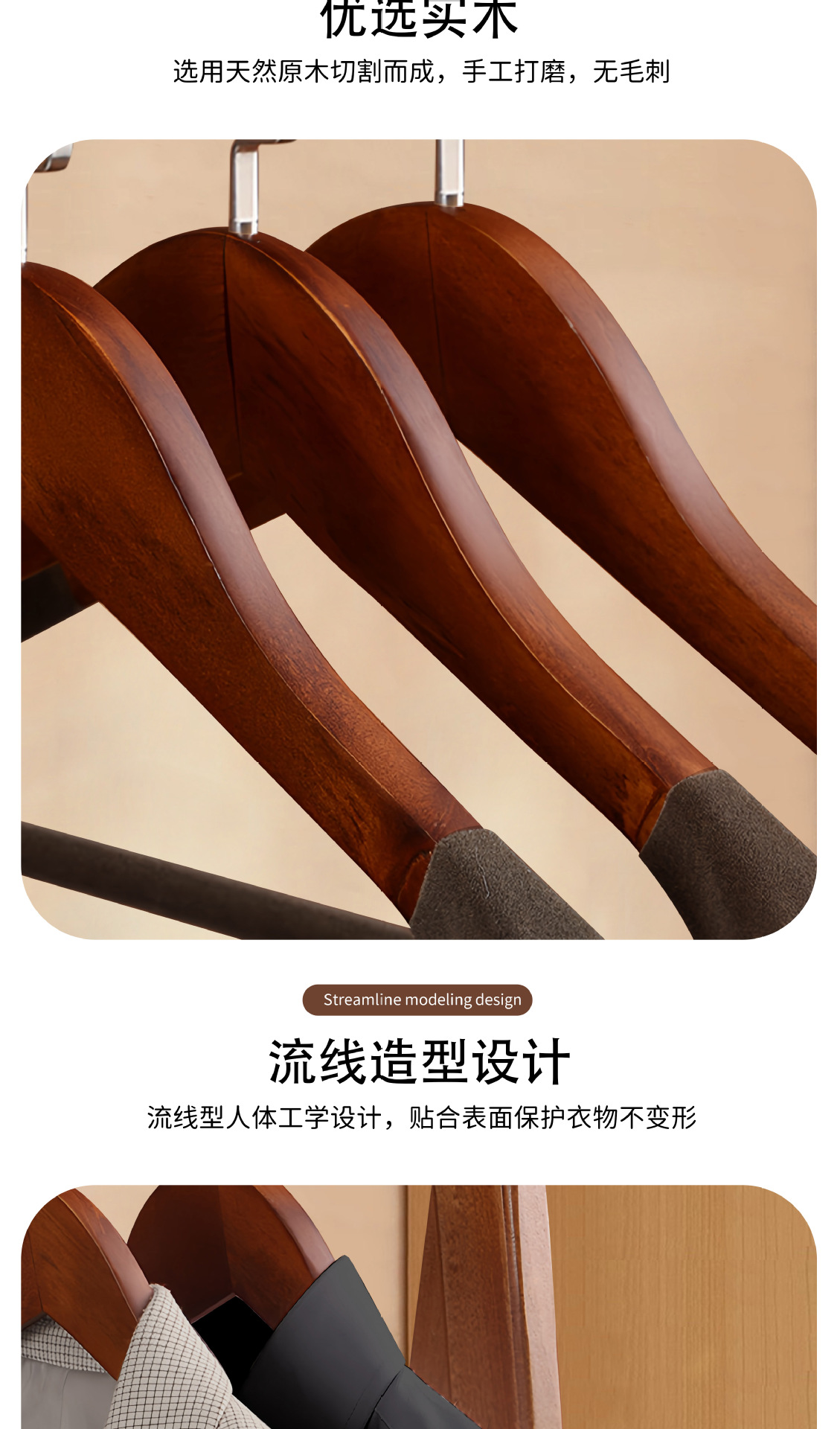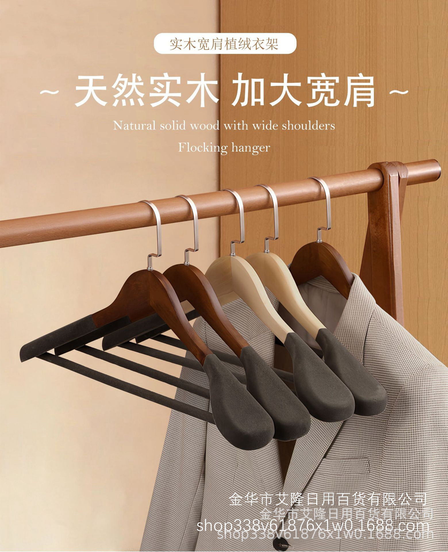 宽肩植绒衣架木质西装大衣无痕家用衣撑成人无痕实木衣架衣挂批发
