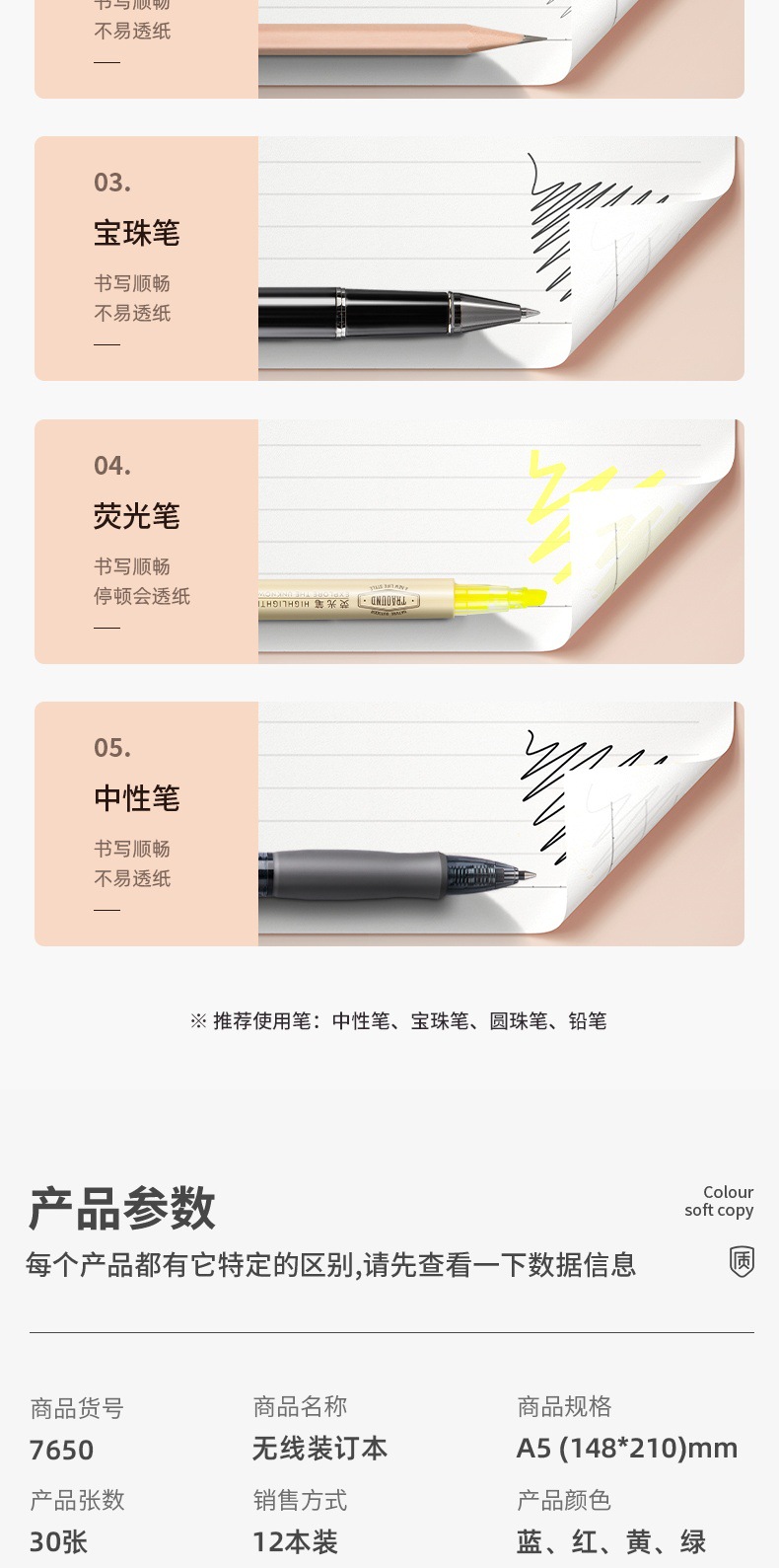 델리 7651 노트북 A5 도매 메모장 두꺼운 소프트 카피 간단한 학생 비즈니스 오피스 노트북 40