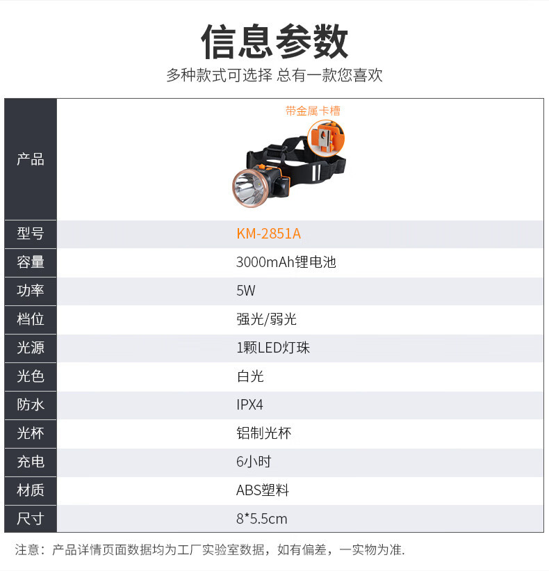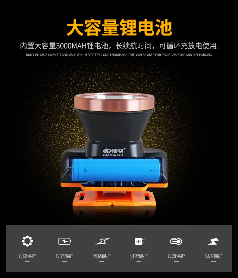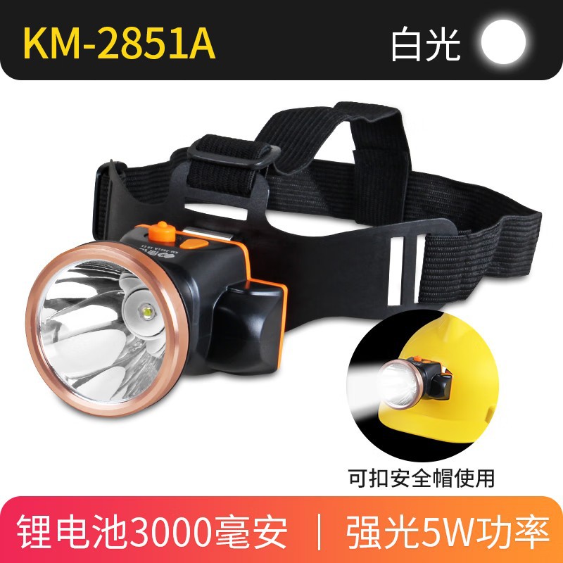 Kangming KM-2851A 충전식 미니 5W 리튬 배터리 광부용 램프 안전모 헤드라이트 야외 건설 현장용 초고휘도 헤드라이트